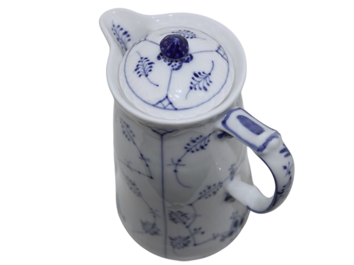Royal Copenhagen Musselmalet Riflet, sjælden chokoladekande med tilhørende låg.