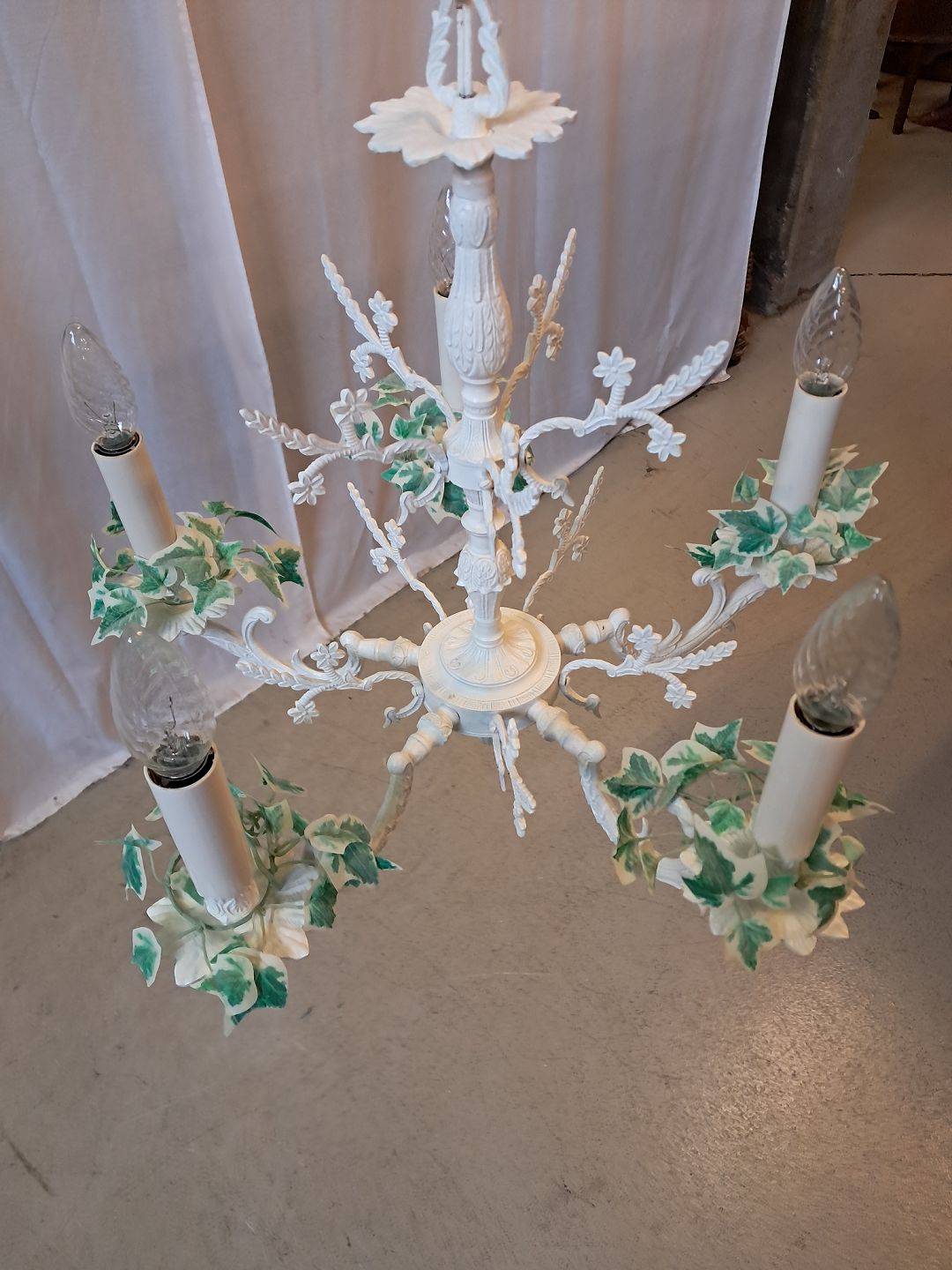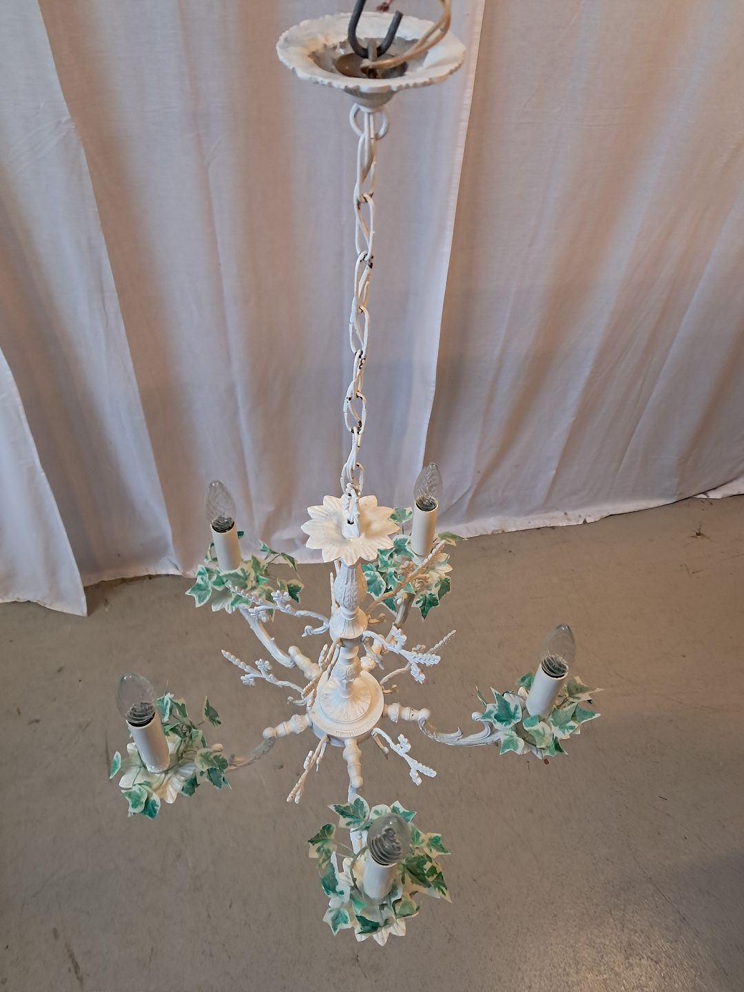 Lysekrone i malet metal, fra 1980erne.