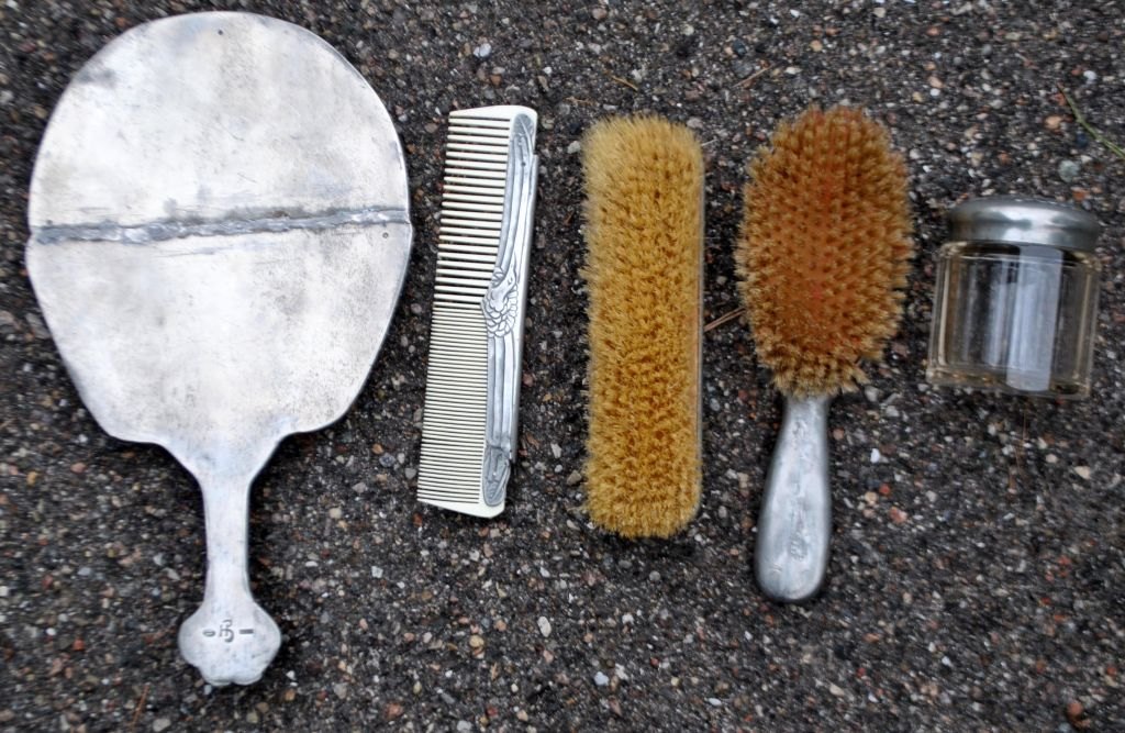 Hertz/Ballin Toilettengarnitur aus Zinn, Art déco, Entwurf 1719. Um 1920. Kopenhagen, Dänemark.