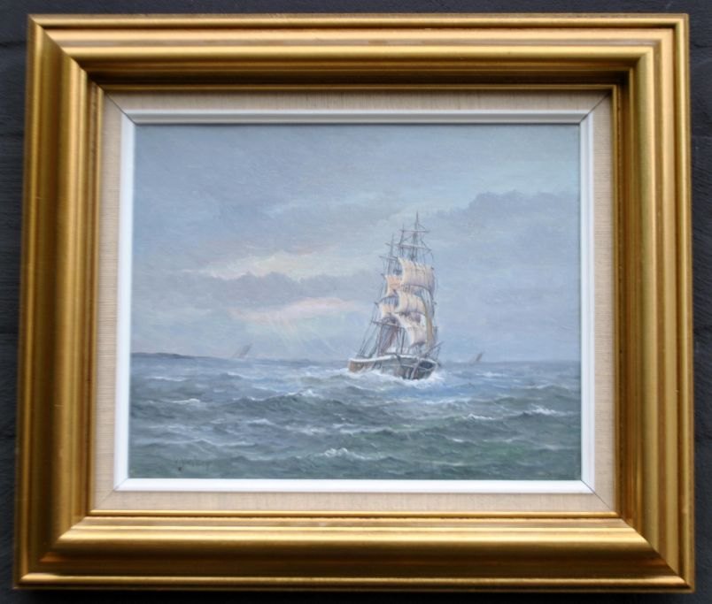 Nielsen, Verner (1910 - ) Dänemark: Marine mit Segelschiffen. Öl auf Leinwand. Signiert. 24 x 30 cm.