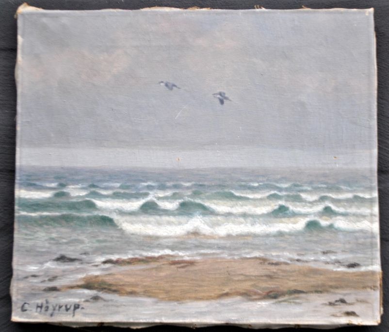 Høyrup, Carl (1893 - 1961) Dänemark: Zwei Reiher. Strand von Kerteminde, 1924. Öl auf Leinwand. Signiert: C. Höyrup. H: 33 cm. B: 38 cm.