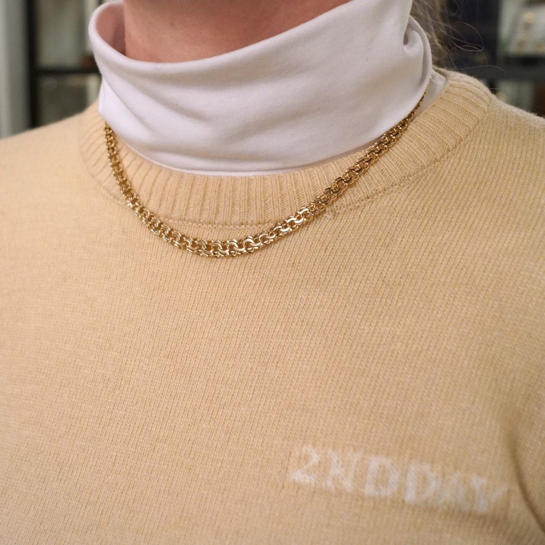 Text zugänglich auf Dänische: Bismarckhalskæde i forløb, 14 kt. guld, l. 43 cm.