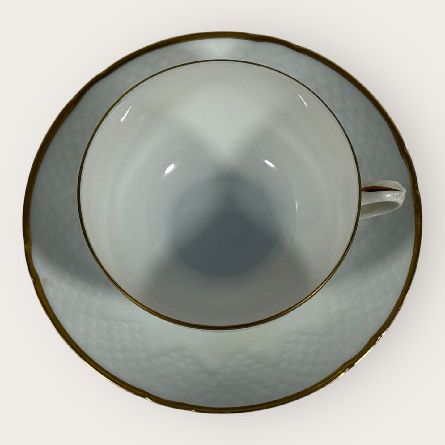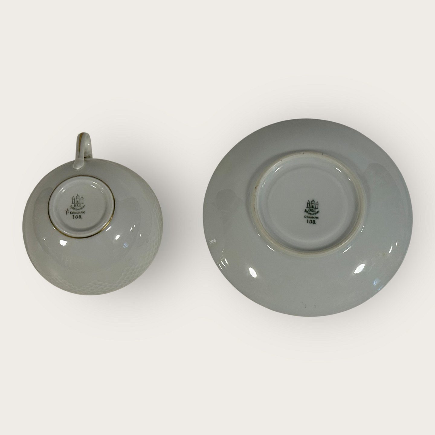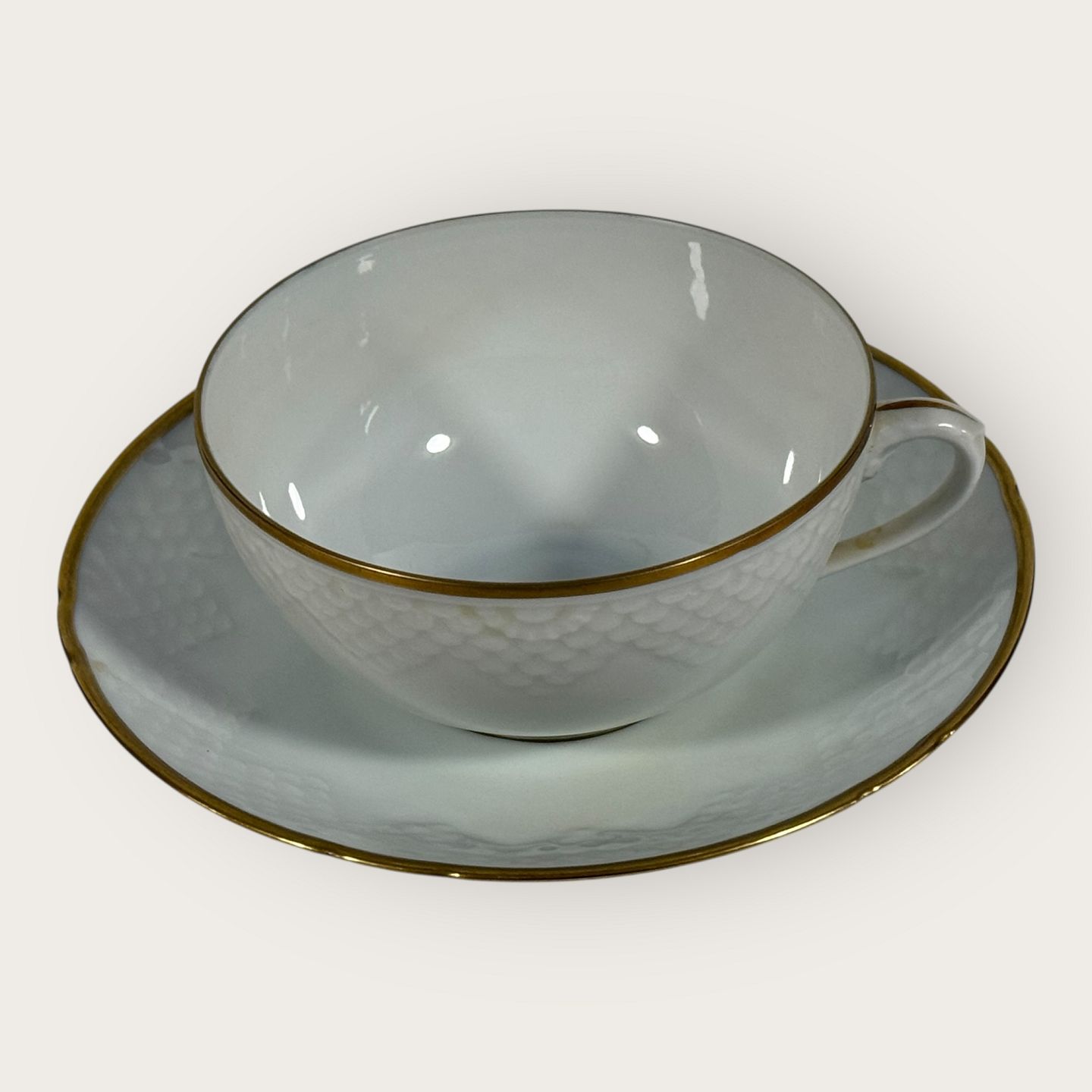 Bing & Grondahl, Aakjær, Weißes Porzellan mit Goldrand, Teetassenset Nr. 108, 5 cm hoch, 10 cm Durchmesser, 1. Wahl *Guter Zustand*