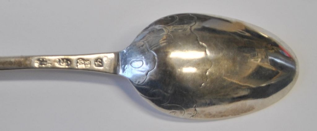 Niels Pihl (ca. 1745–1796), Kopenhagen, Dänemark: Rokoko-Silberlöffel, gestempelt 1778. Mit Rokoko-Verzierungen. Länge: 20,5 cm. Gewicht: 54 Gramm.