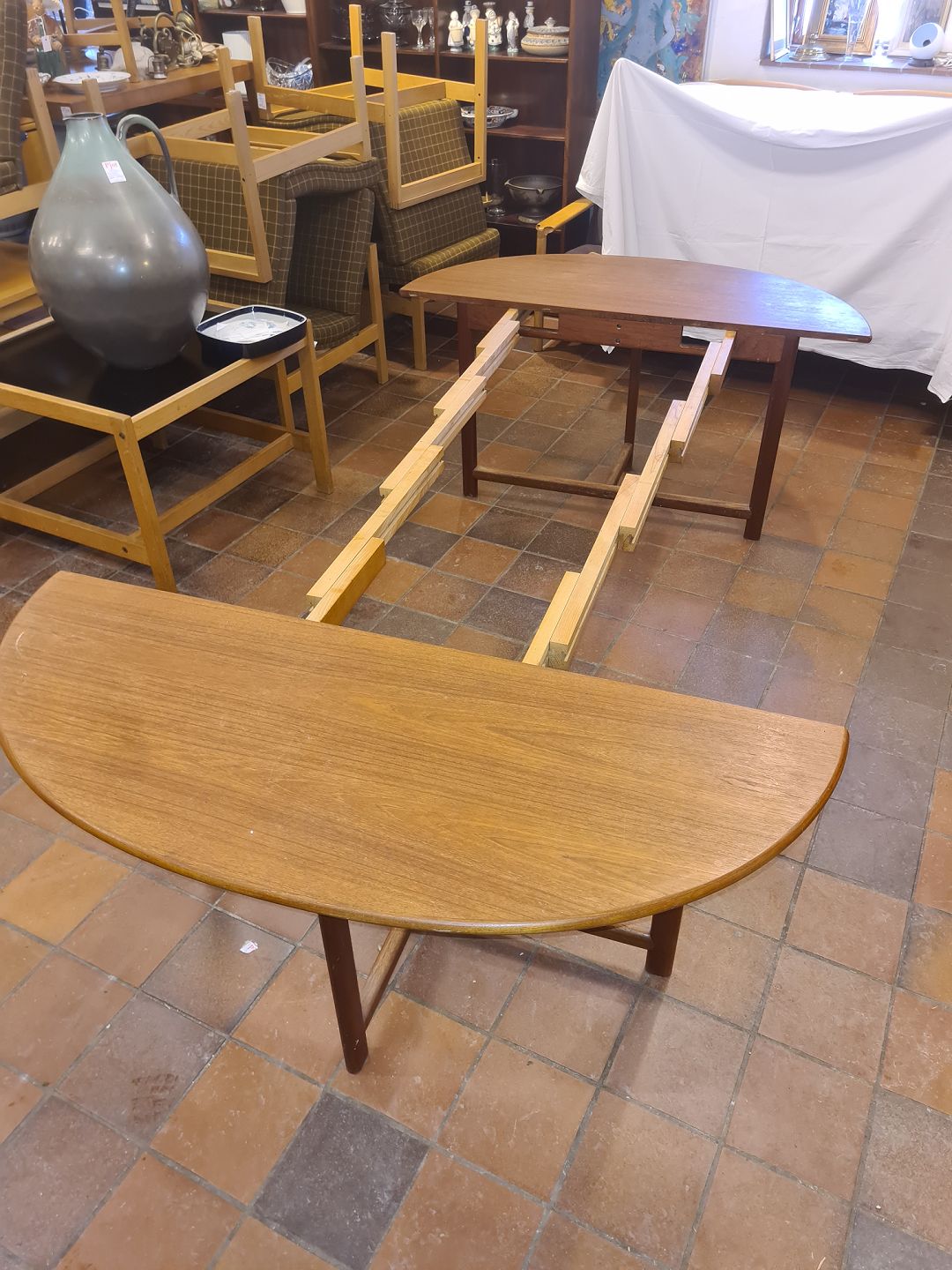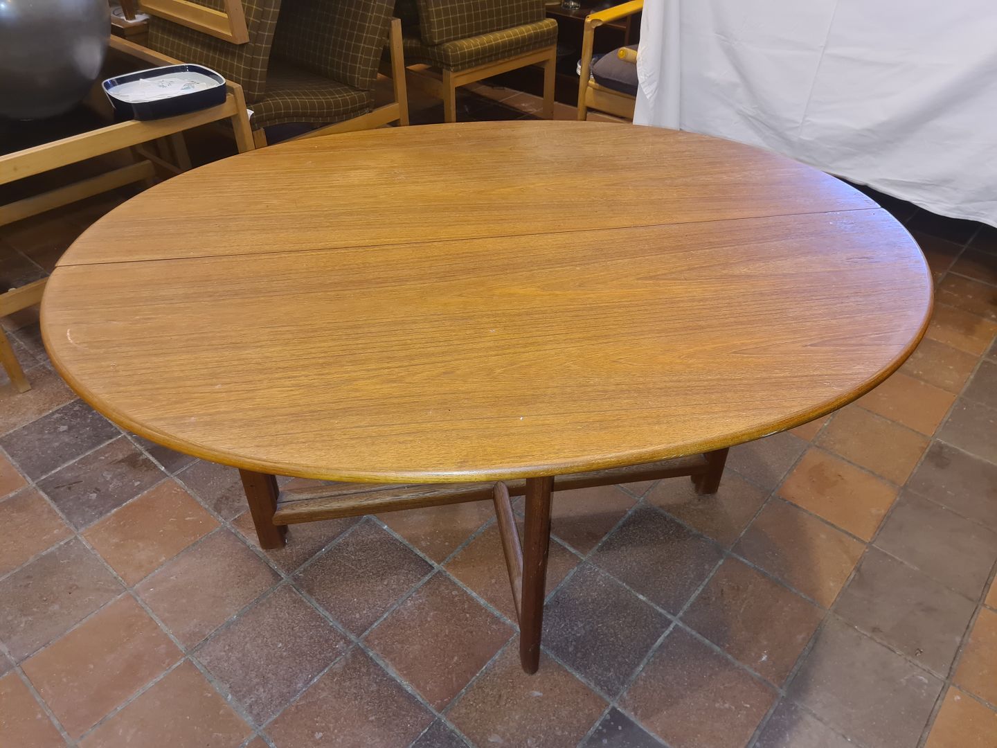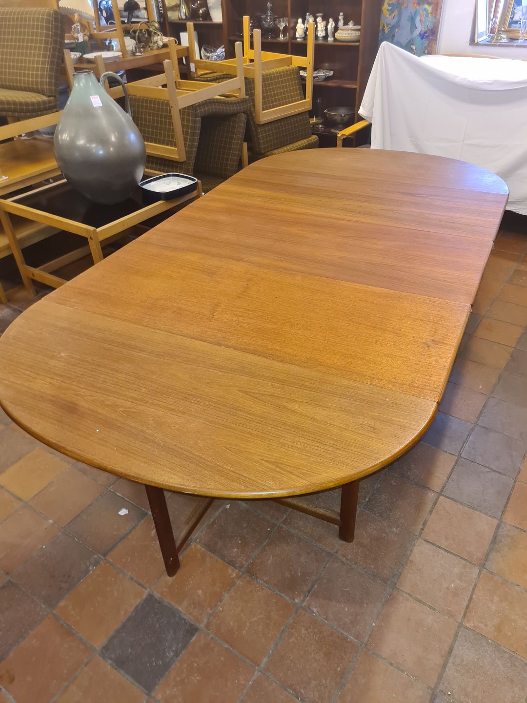 Ovalt bord i teak m. udtræk.