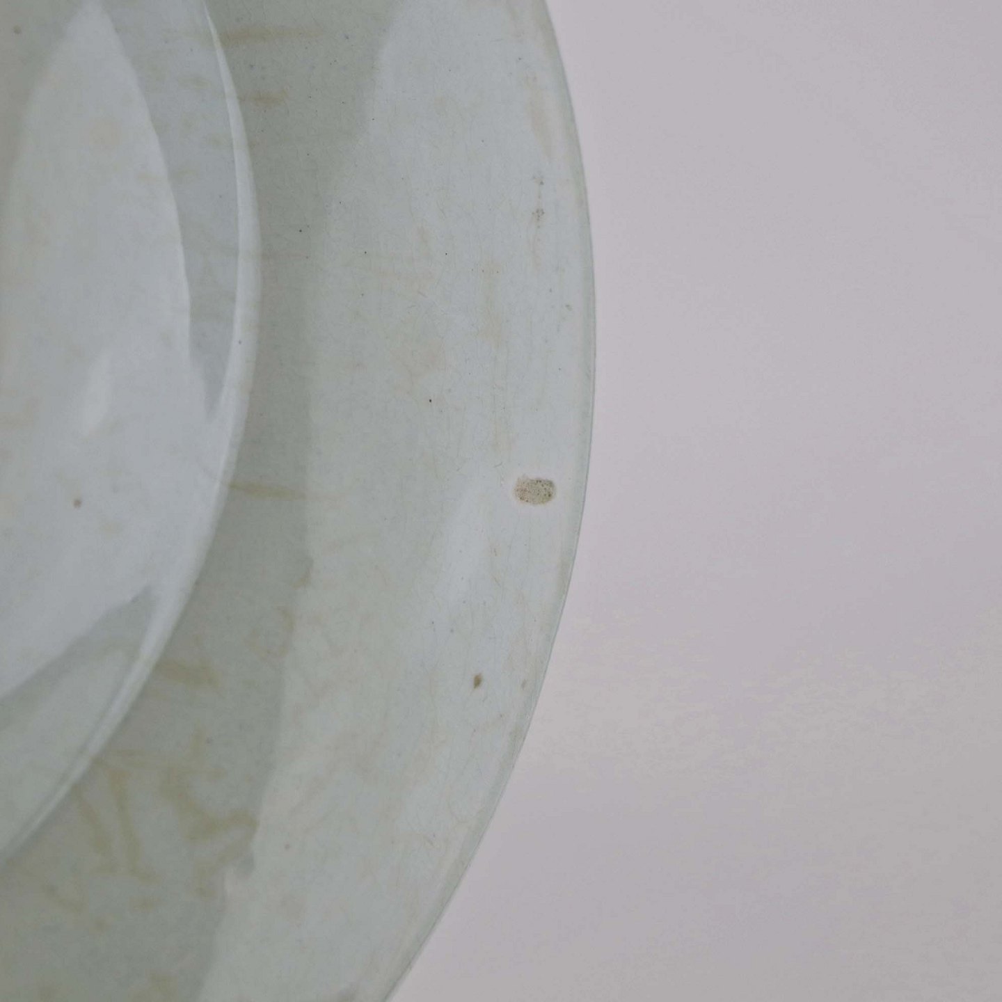 Fremstår med mørkning under glasuren samt krakkeleringer i glasuren.