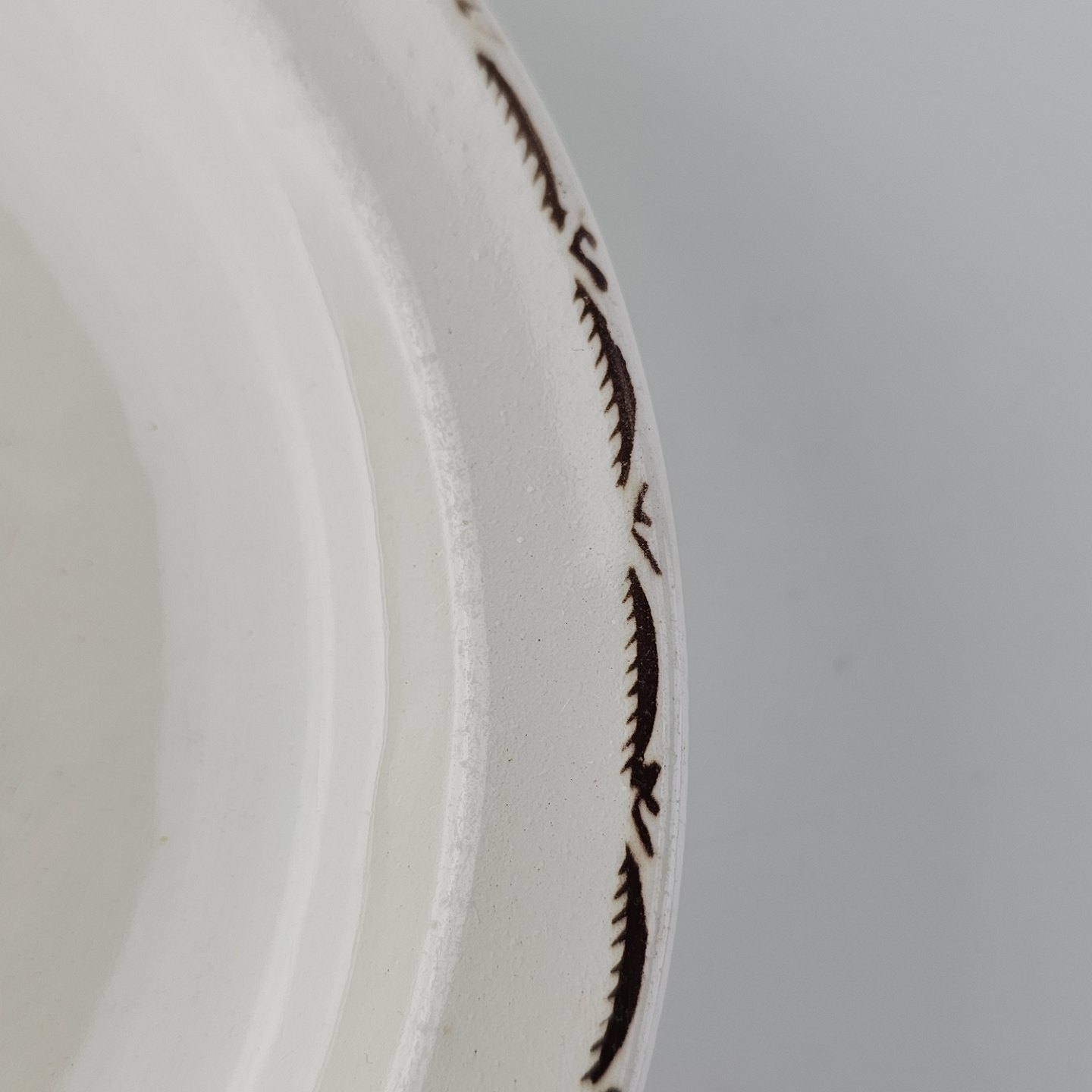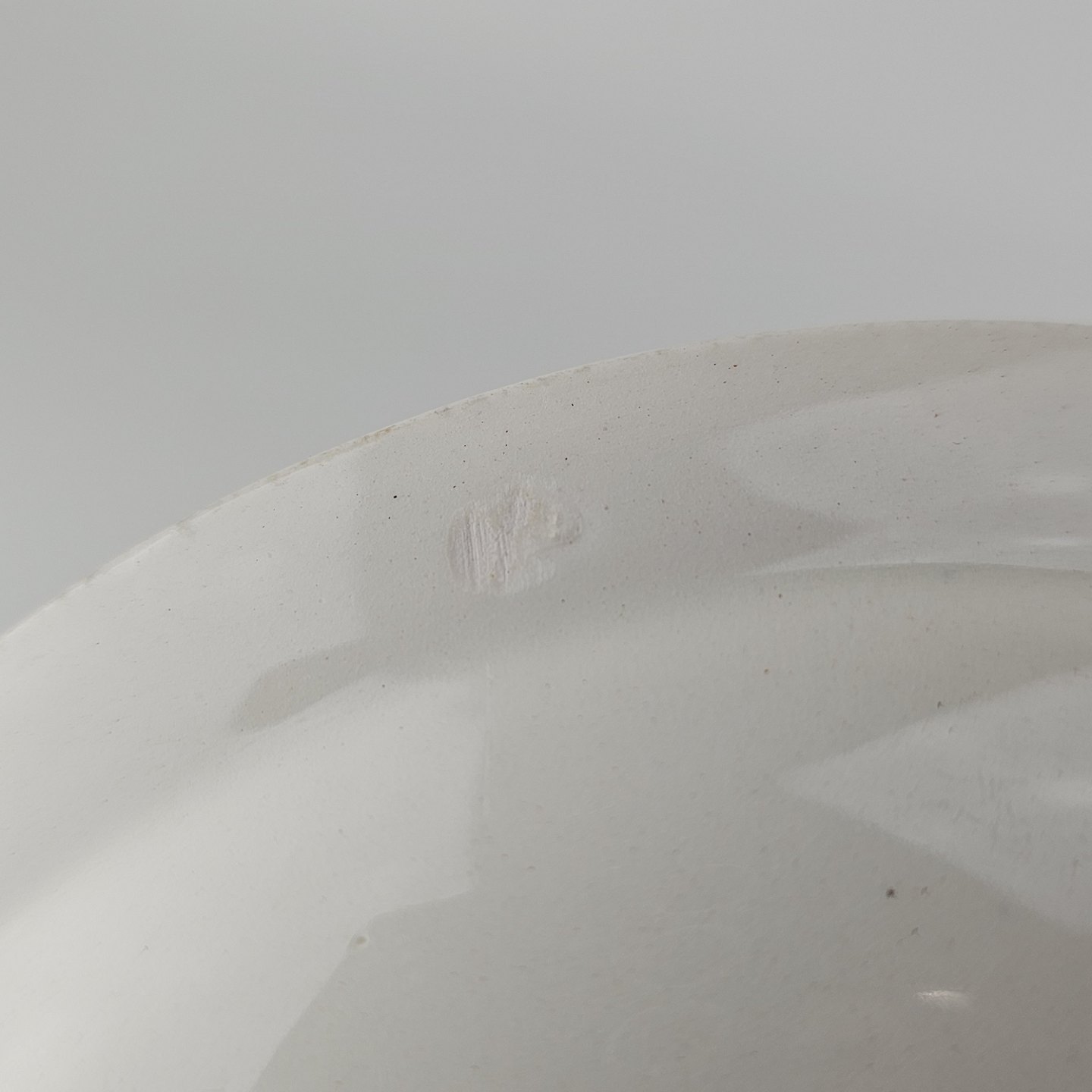 Fremstår med krakeleringer og et mærke i porcelænet under bunden