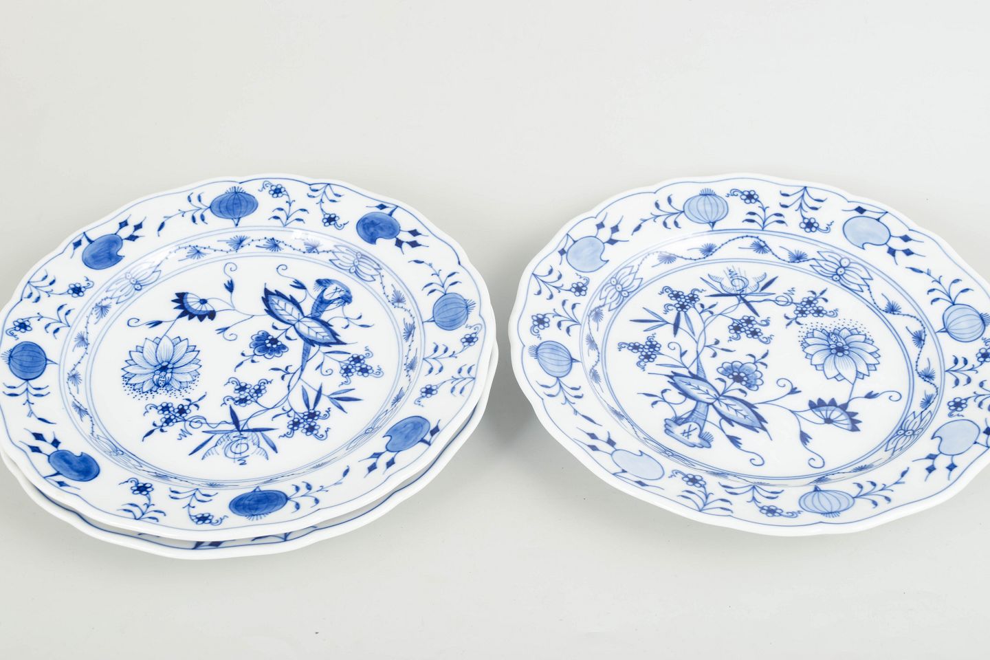Text zugänglich auf Dänische: Meissen, Blå løgmønster, sæt på 3 middagstallerkener.