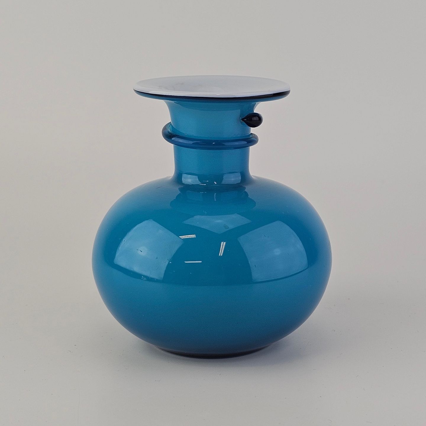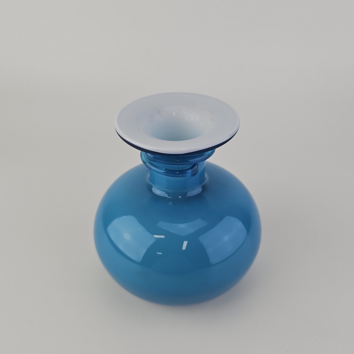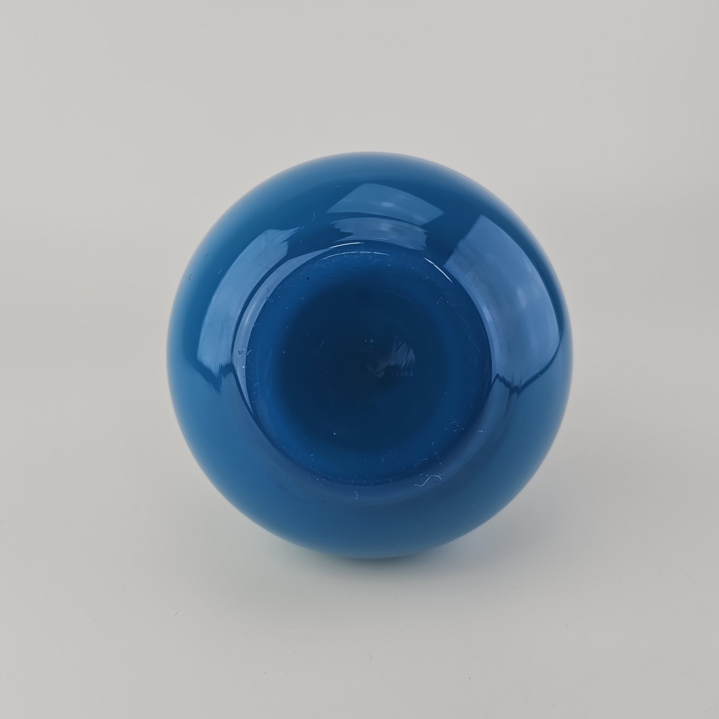 Rund Napoli glasvase i blåt opalglas med hvid inderside