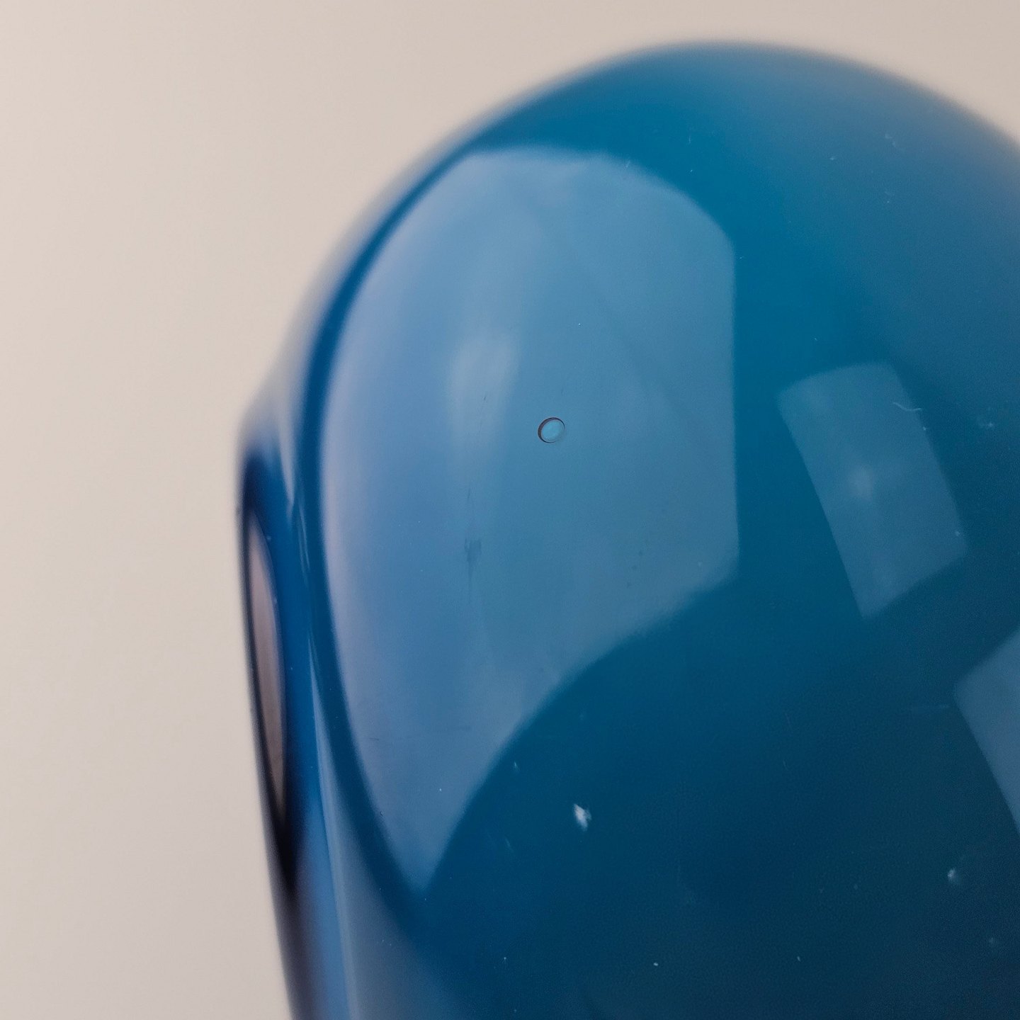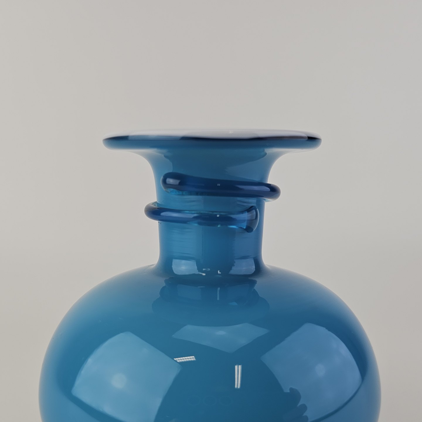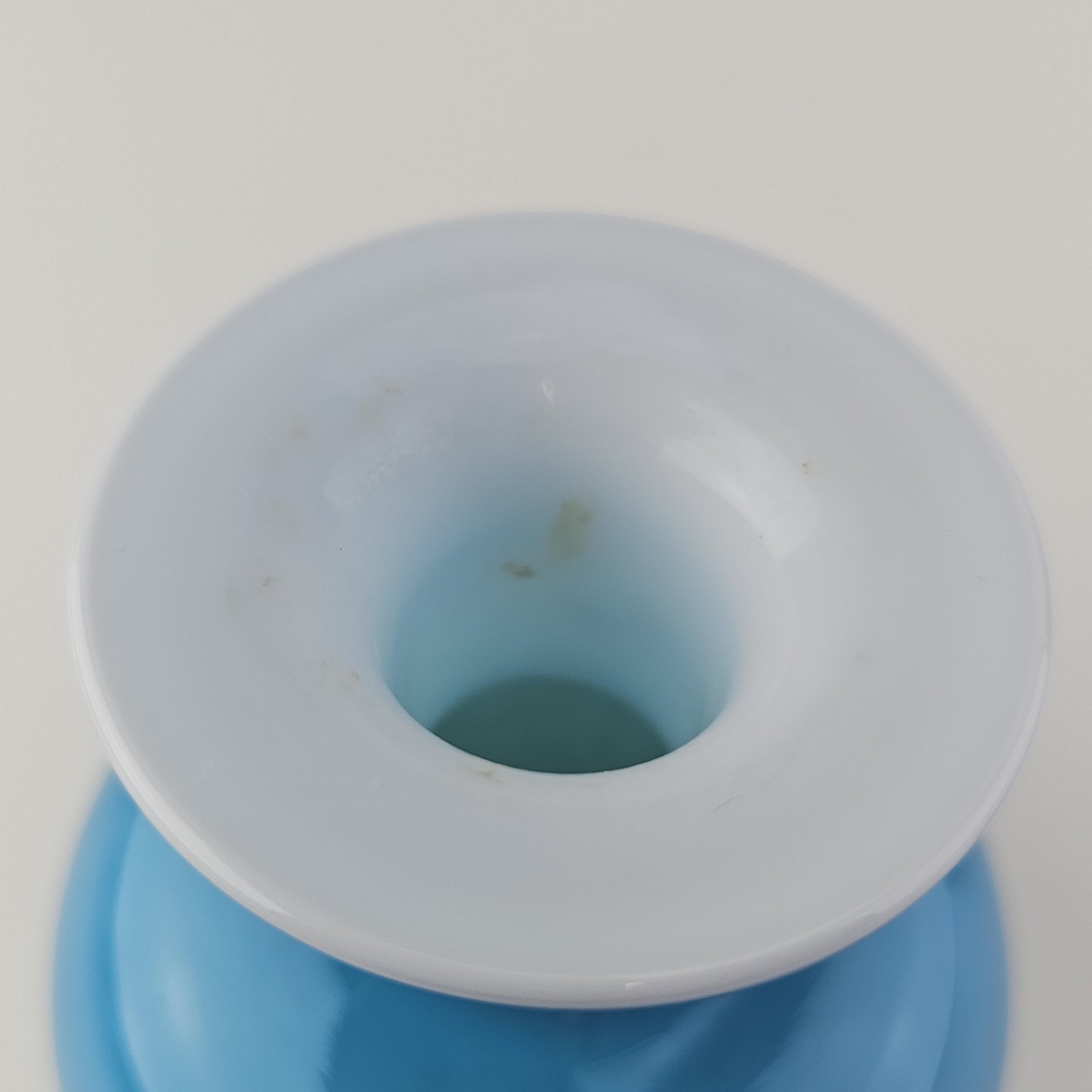 Rund Napoli glasvase i blåt opalglas med hvid inderside