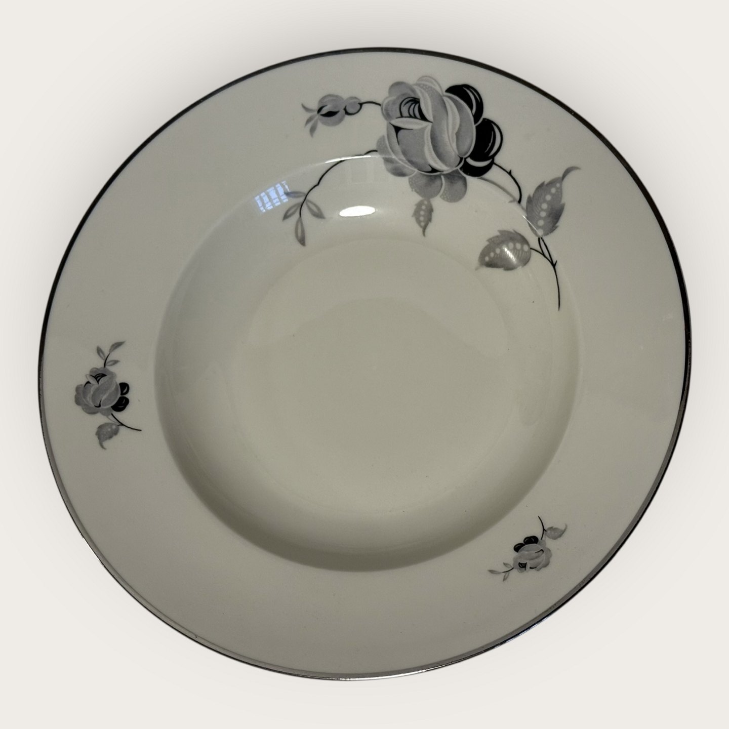 | Schwarze Rose, mit Plantin-Rand, KPM, Lyngby, kleiner tiefer Teller, 21,5 cm Durchmesser *Guter Zustand*