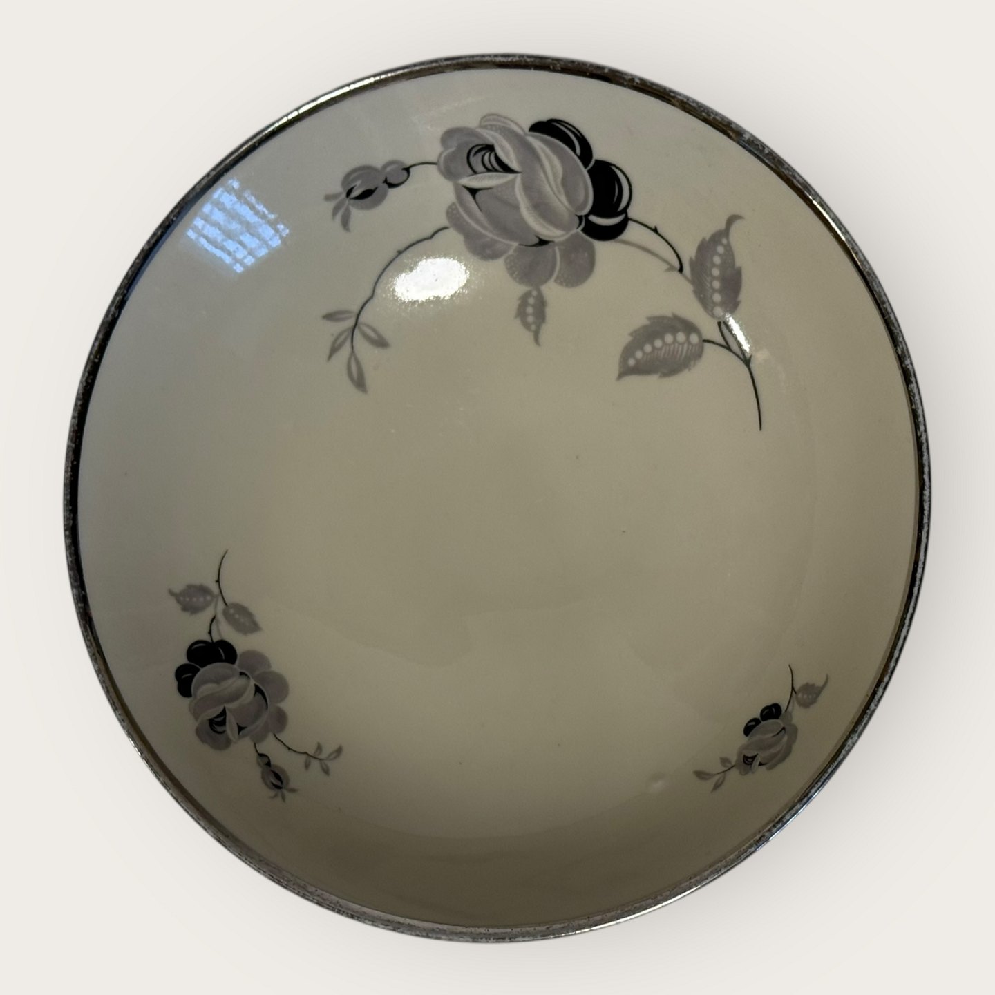 Schwarze Rose, mit Plantin-Rand, KPM, Lyngby, Schale auf Fuß, 19 cm Durchmesser, Höhe 6,5 cm *Leichte Gebrauchsspuren am Silberrand, ansonsten in gutem Zustand*