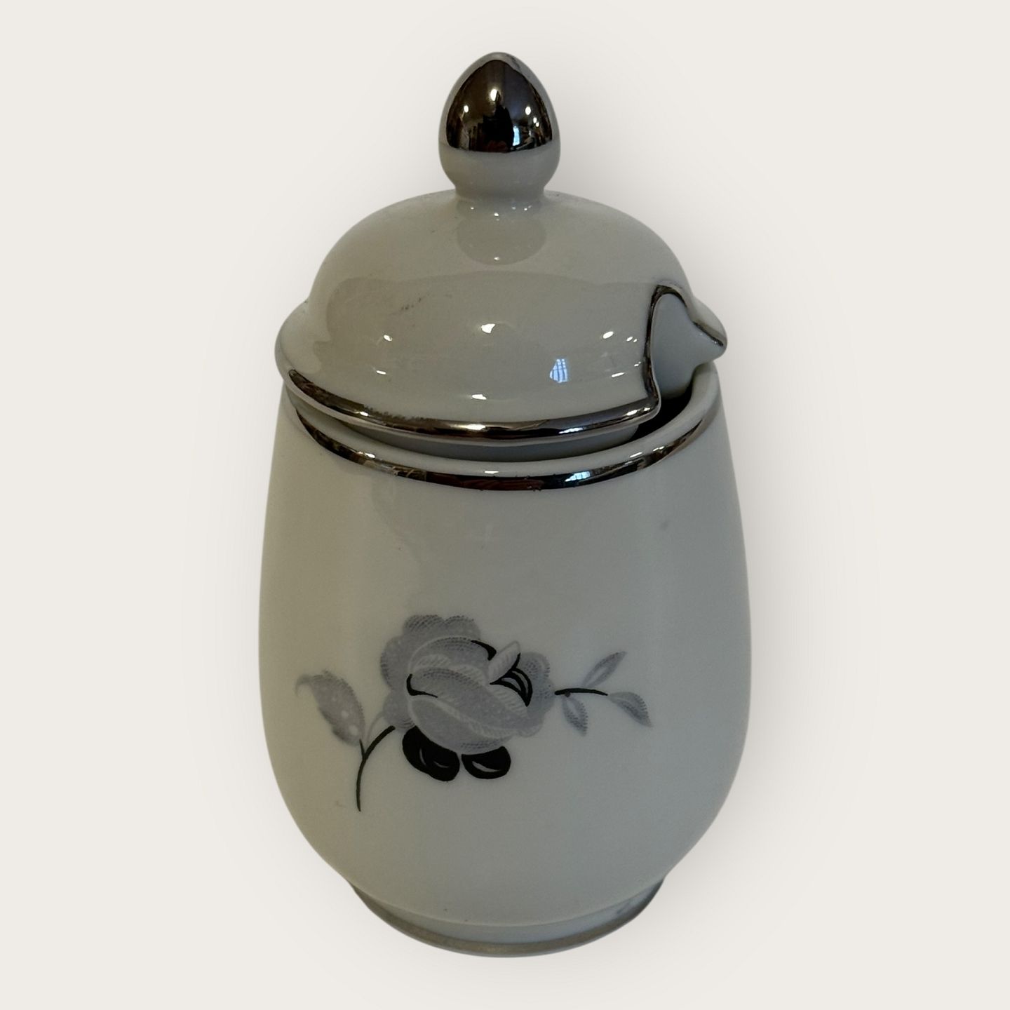 Schwarze Rose mit Plantin-Rand, KPM, Lyngby, Senfglas, 9 cm hoch *Guter Zustand*