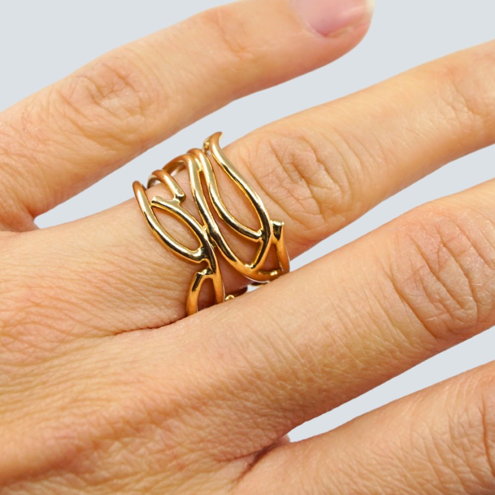 Carl Antonsen; Bred ring i 14 kt. guld. Ring str. 52-53.