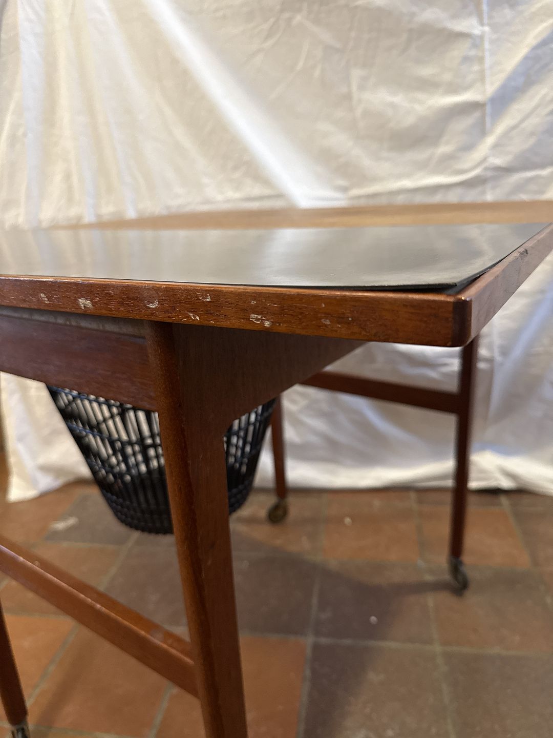 Text zugänglich auf Dänische: Dansk møbelproducent sybord i fineret teak m. plade i formica.