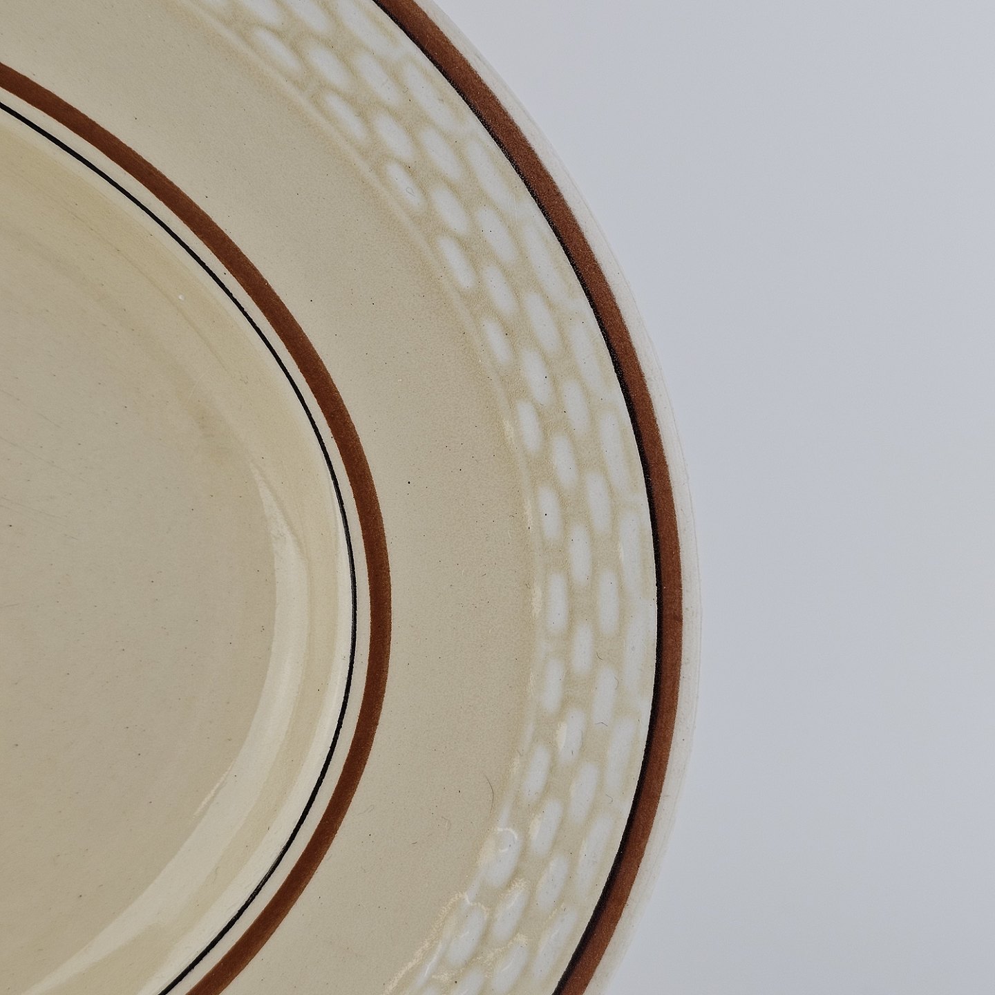 Knud er cremefarvet fajance dekoreret med flettet kant og brune og orange blomster. Stellet blev produceret i år 1934-1963.