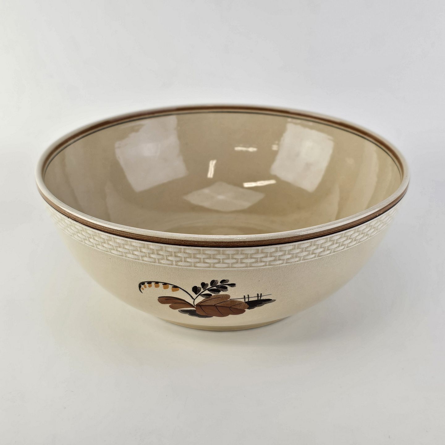 Knud er cremefarvet fajance dekoreret med flettet kant og brune og orange blomster. Stellet blev produceret i år 1934-1963.