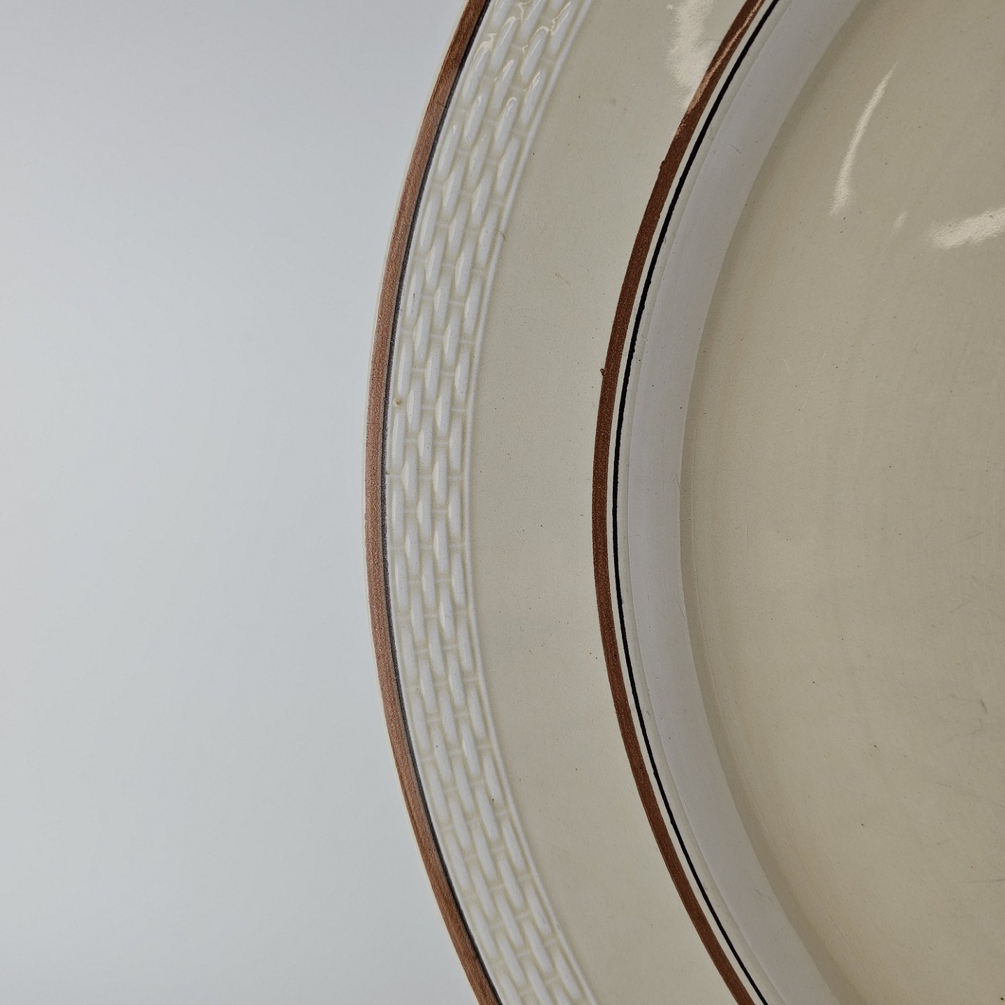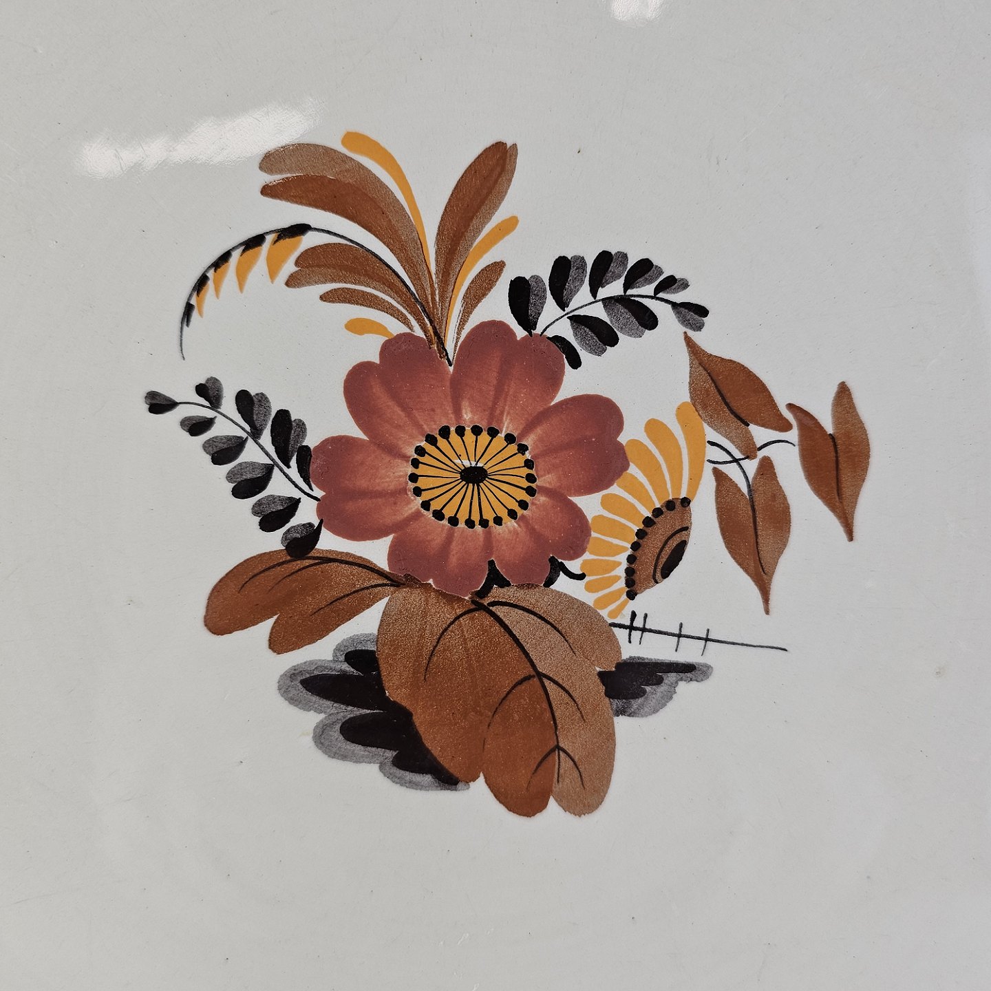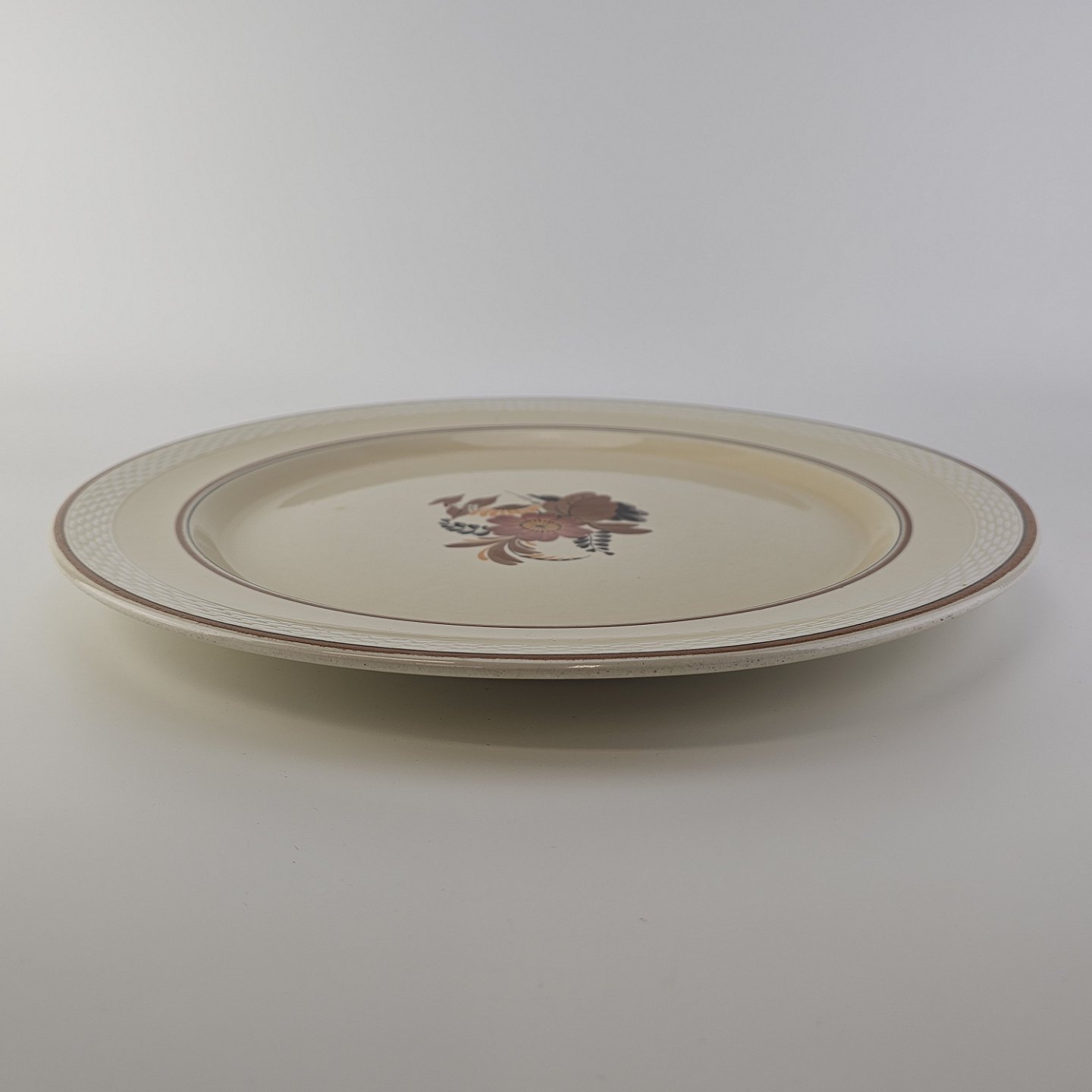 Knud er cremefarvet fajance dekoreret med flettet kant og brune og orange blomster. Stellet blev produceret i år 1934-1963.