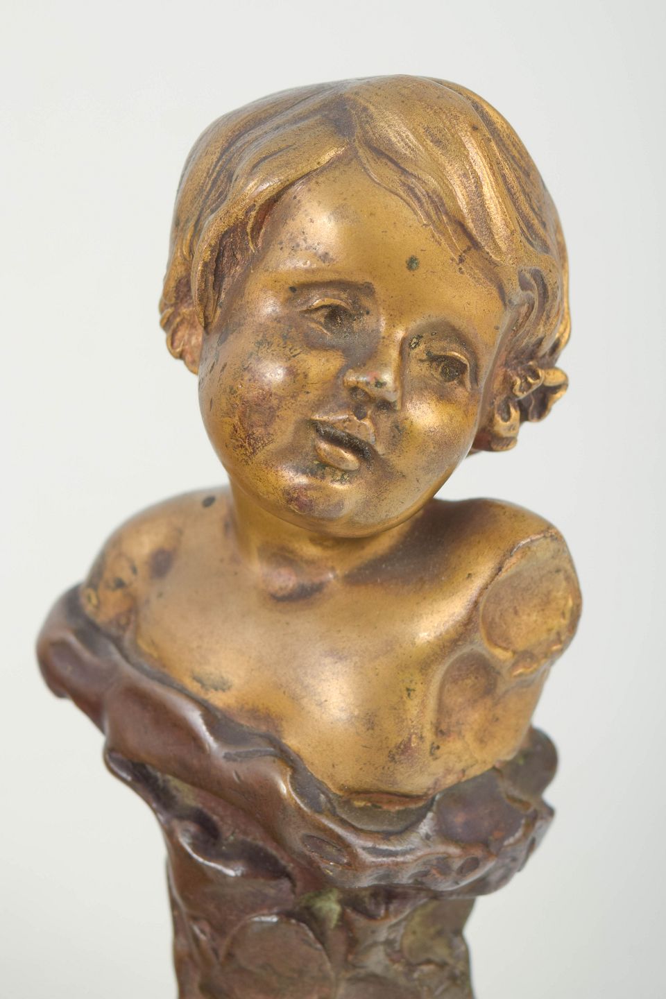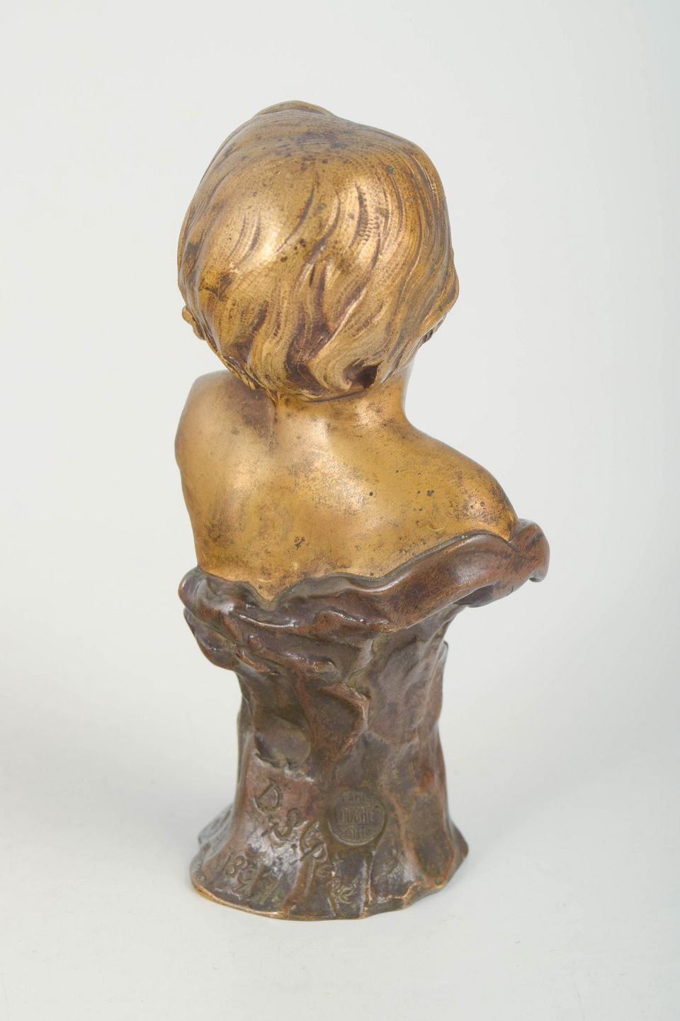 Figurativ buste i massivt bronze forestillende drengeportræt med let drejet hoved og naturalistisk modellering. Udført i 1897 og støbt hos Louchet, Paris.