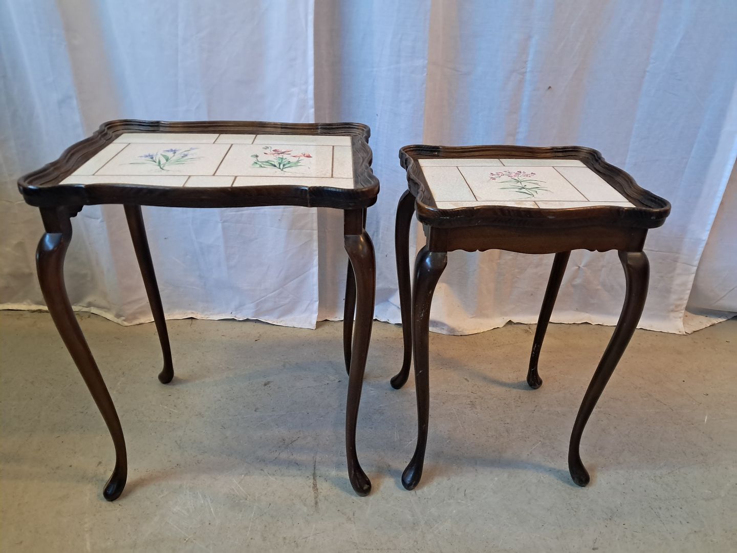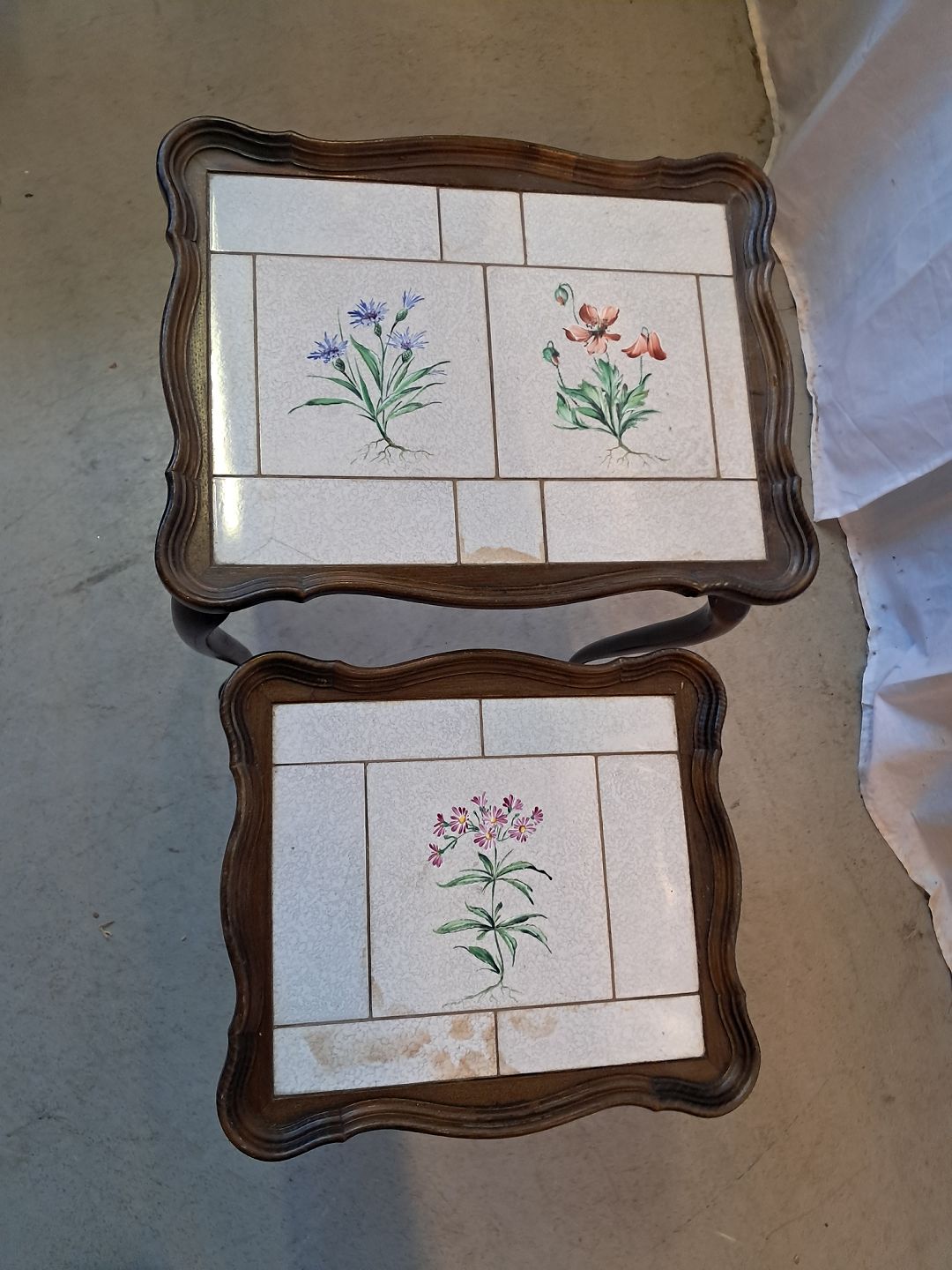 2 Borde i bøgetræ med kakler, fra 1980erne.