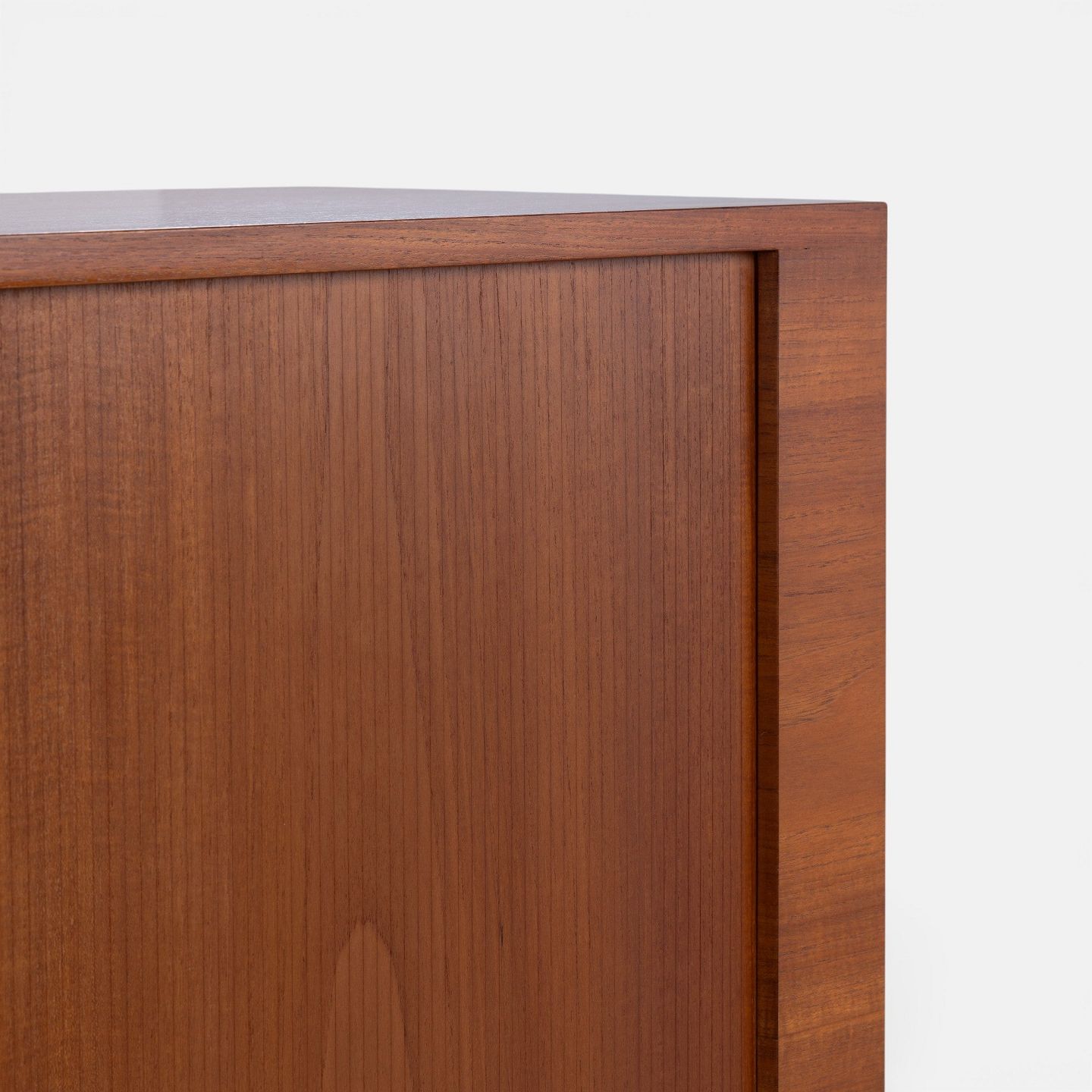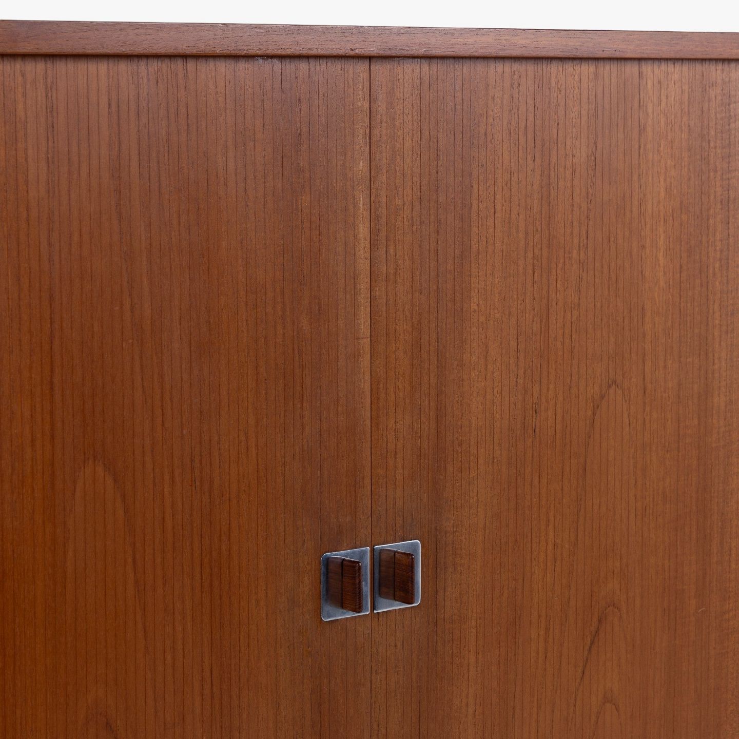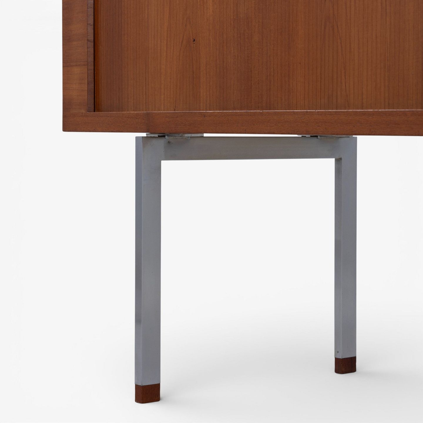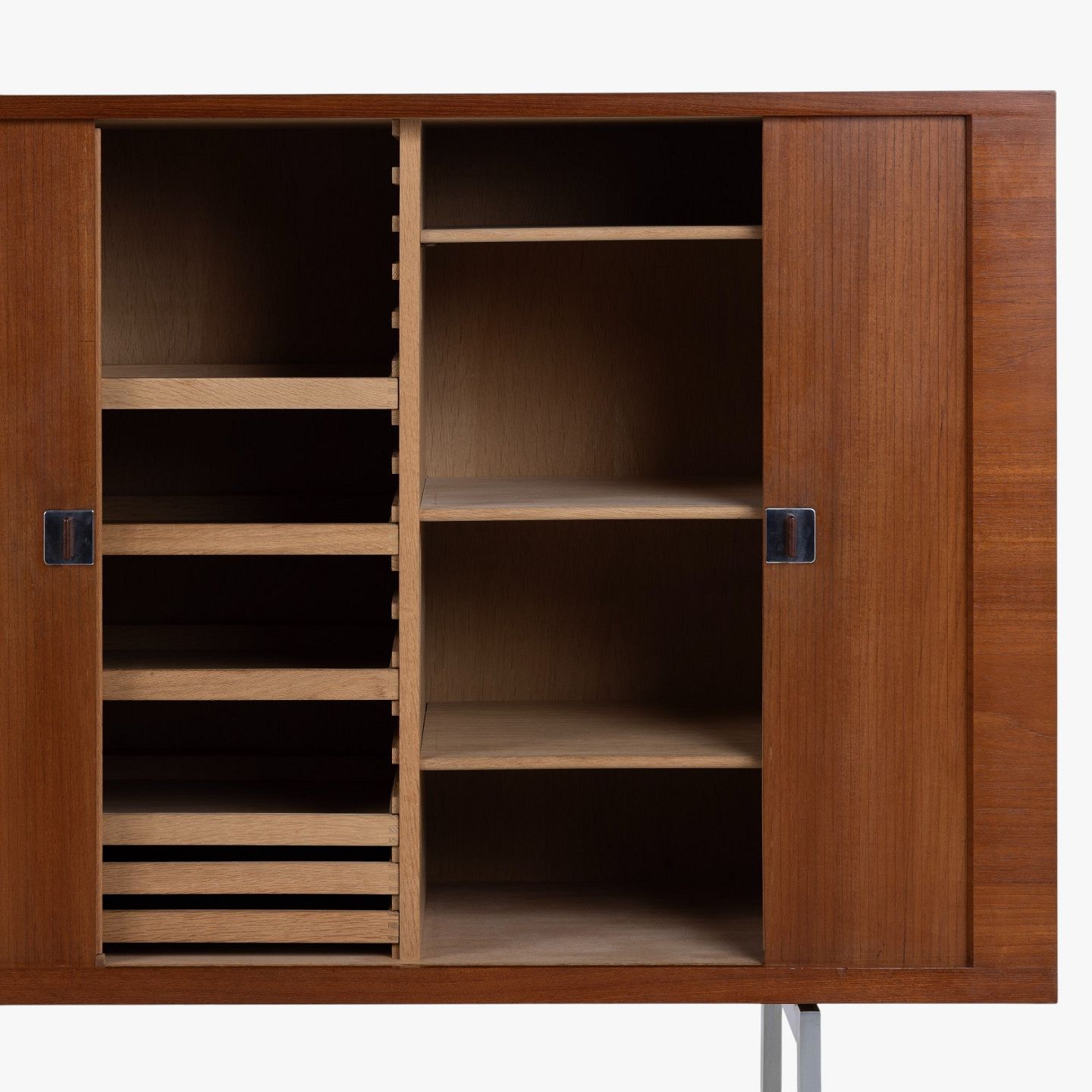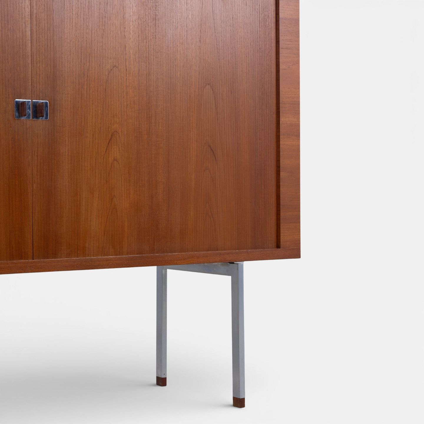 RY 25 - Høj skænk i patineret teak med jalousilåger på stel i stål med sko i teak.