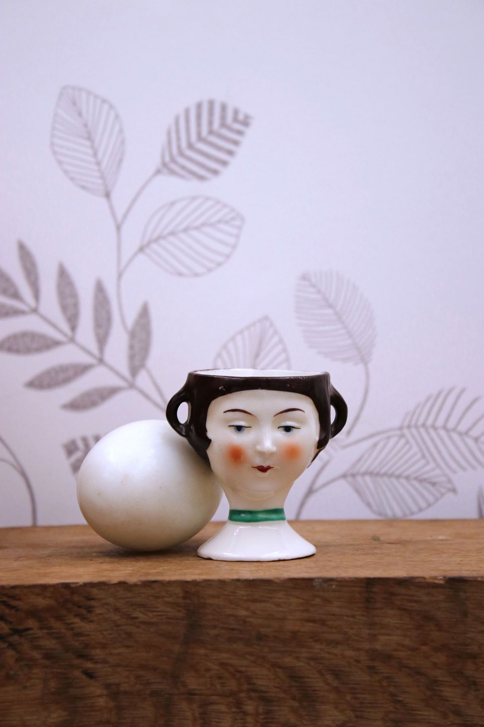 Gammelt æggebægre fra 30érne i porcelæn med bemalet sjovt ansigt.