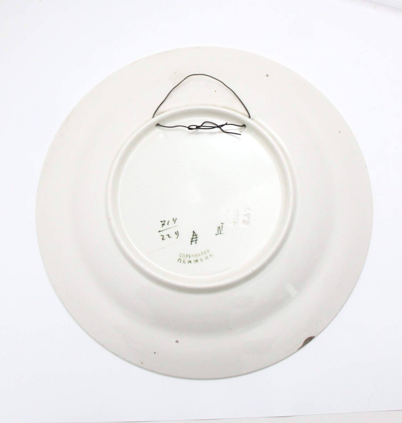 Aluminia, Ringkjøbing Platte. Nr. 714/229. Aluminia Copenhagen Denmark. Diameter 24 cm. Flot stand uden krakeleringer, dog med afslag bagpå. Pris: 325 kr.