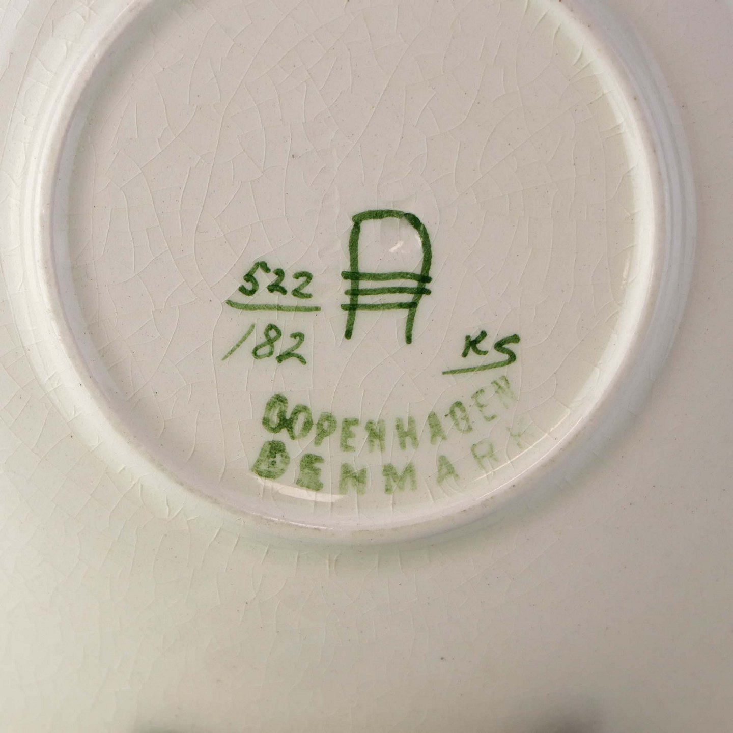 Fremstår med krakkeleringer og ujævnheder i glasuren.