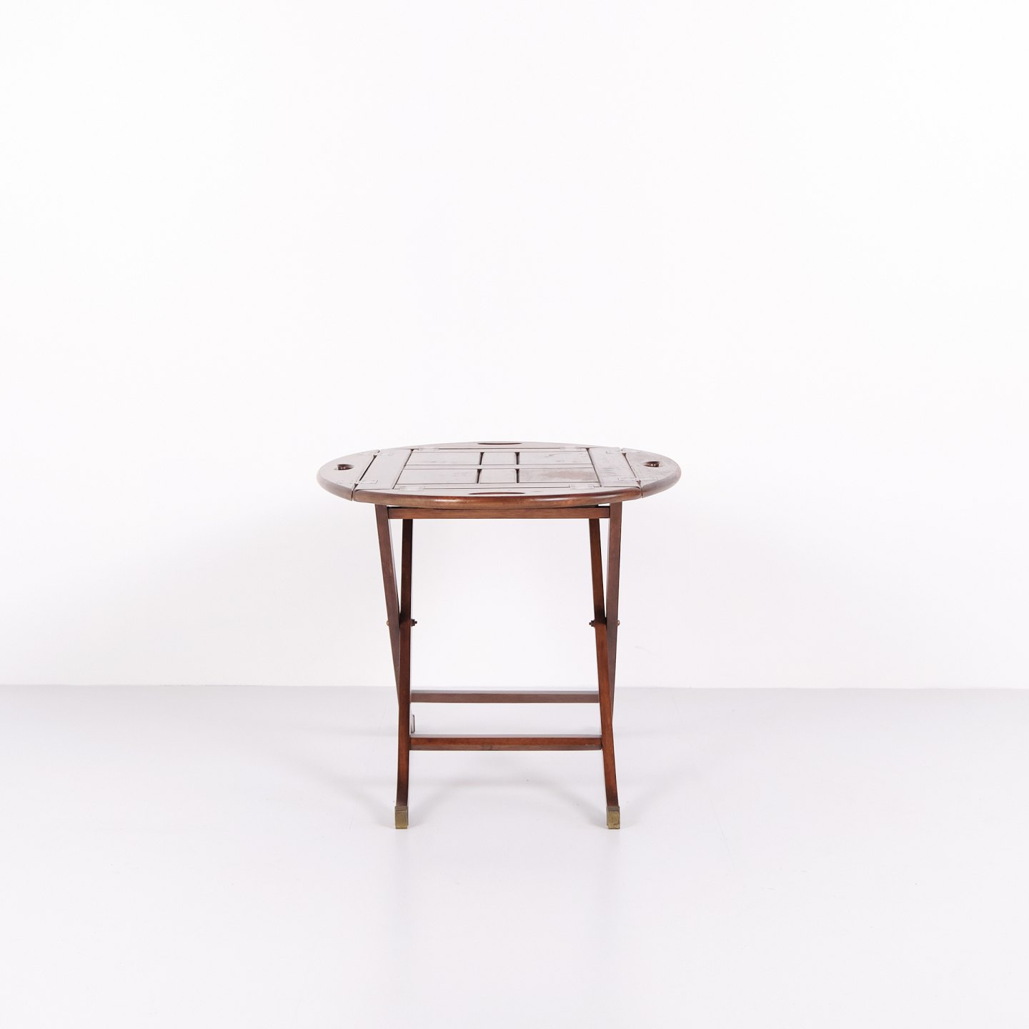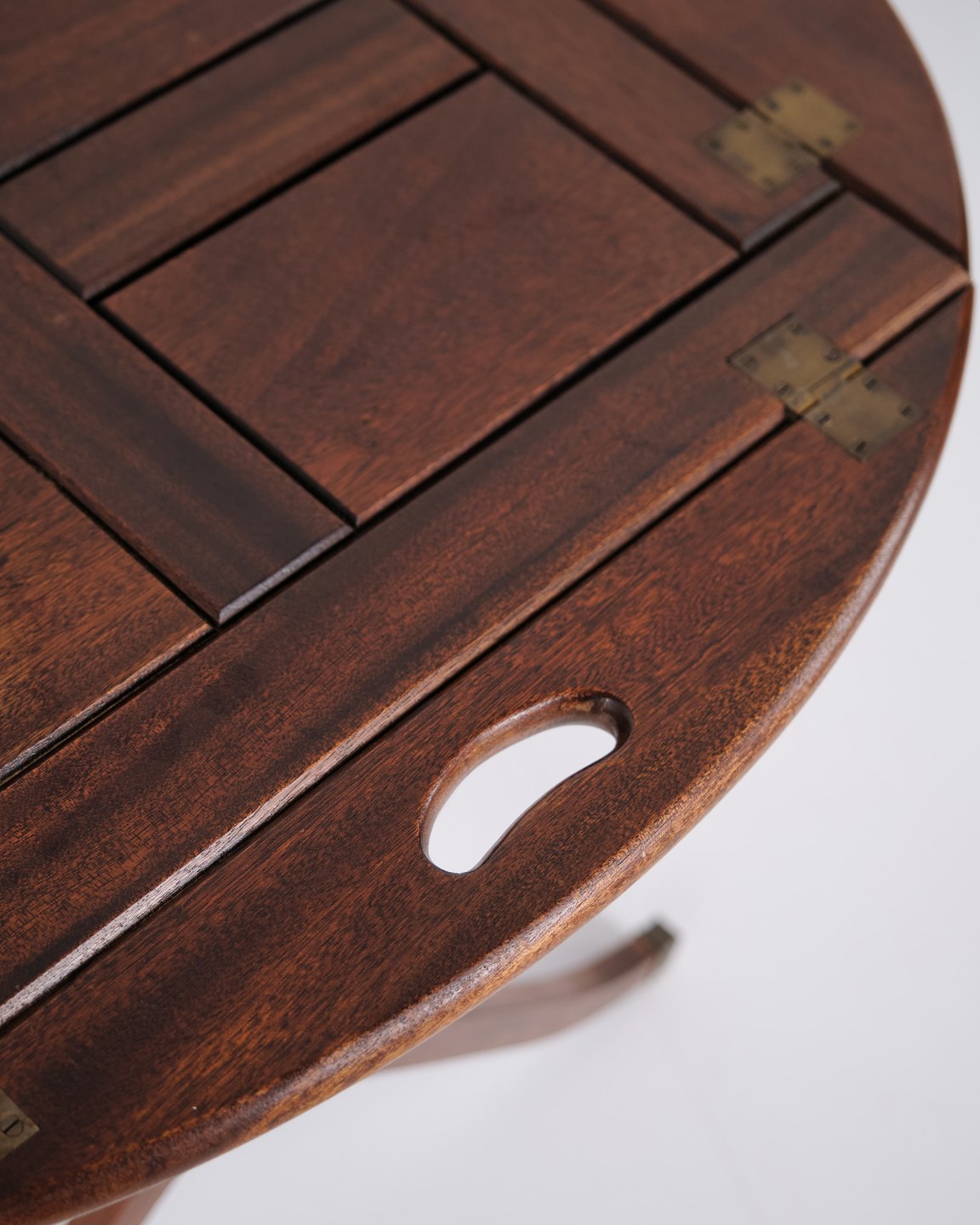 Butlertisch aus den 1940er Jahren aus Mahagoni mit Messingbeschlägen. Klassischer Serviertisch mit abnehmbarem Tablett und elegantem Design.