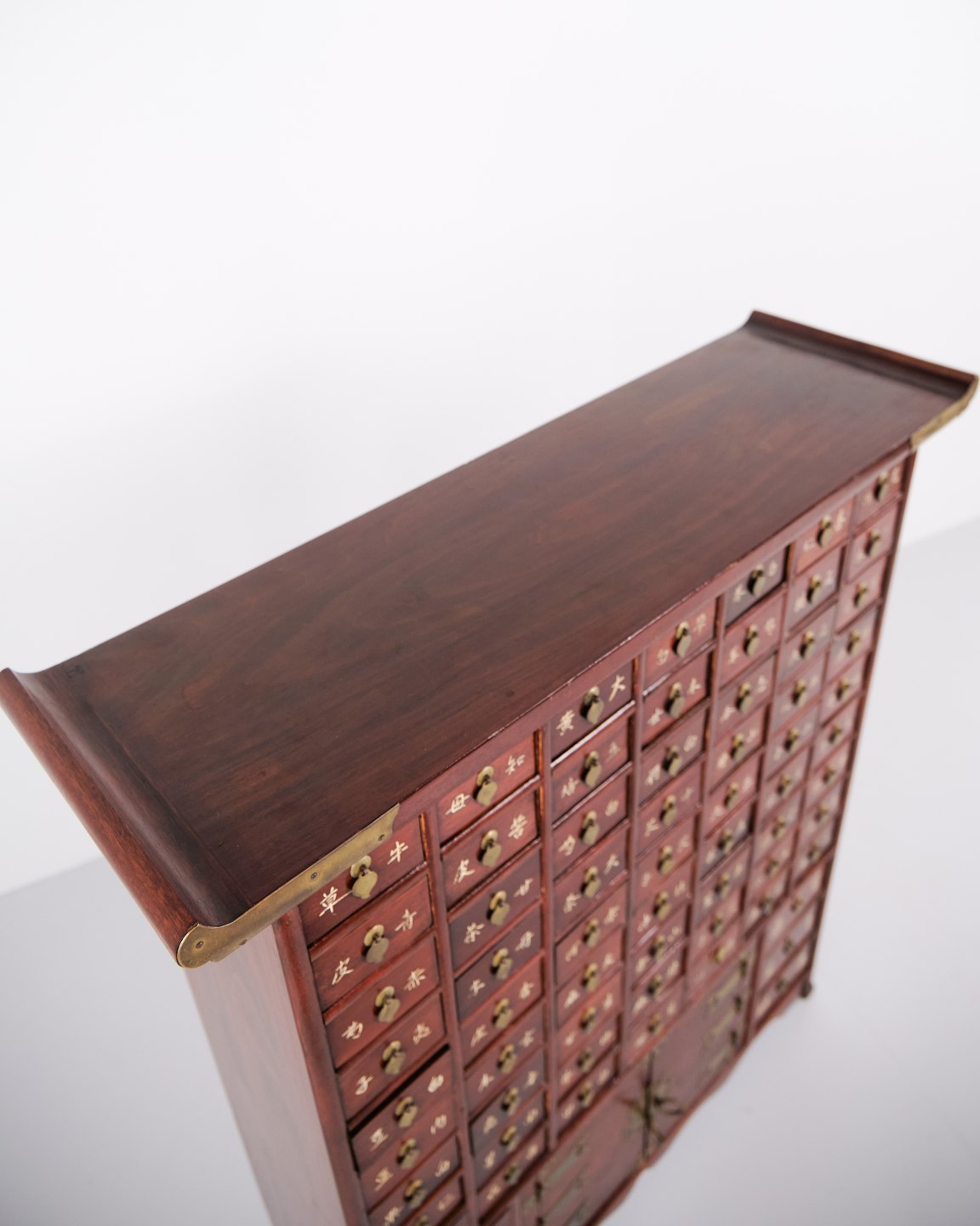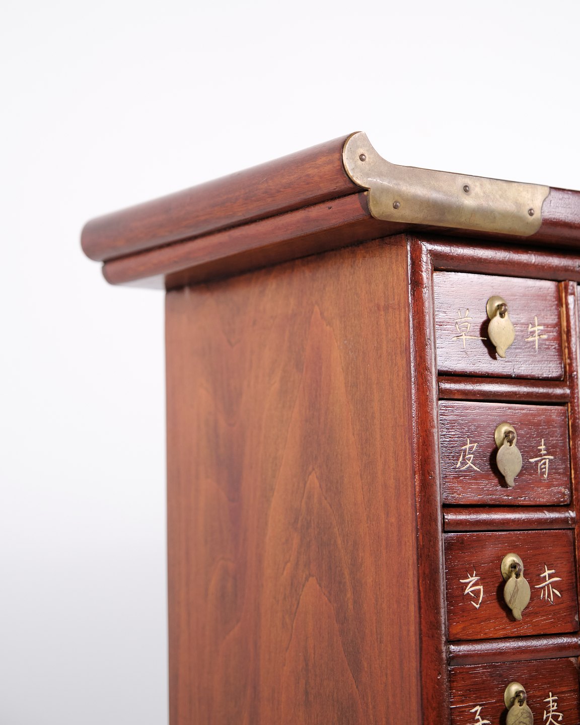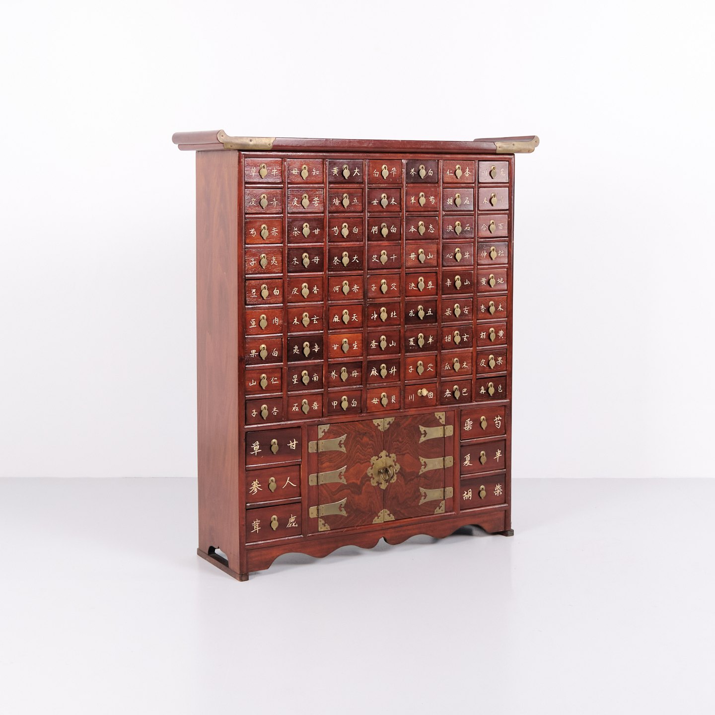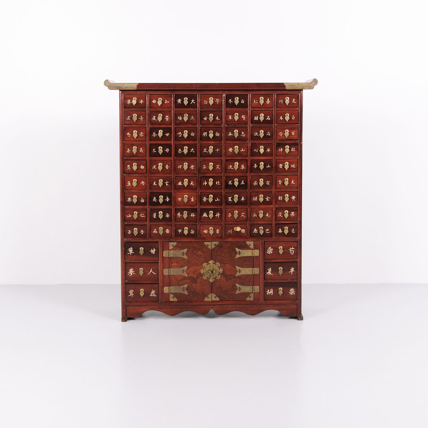 Antiker Apothekerschrank mit 69 Schubladen aus Dunklem Holz und Messingbeschlägen, Koreanischer Stil, um 1910