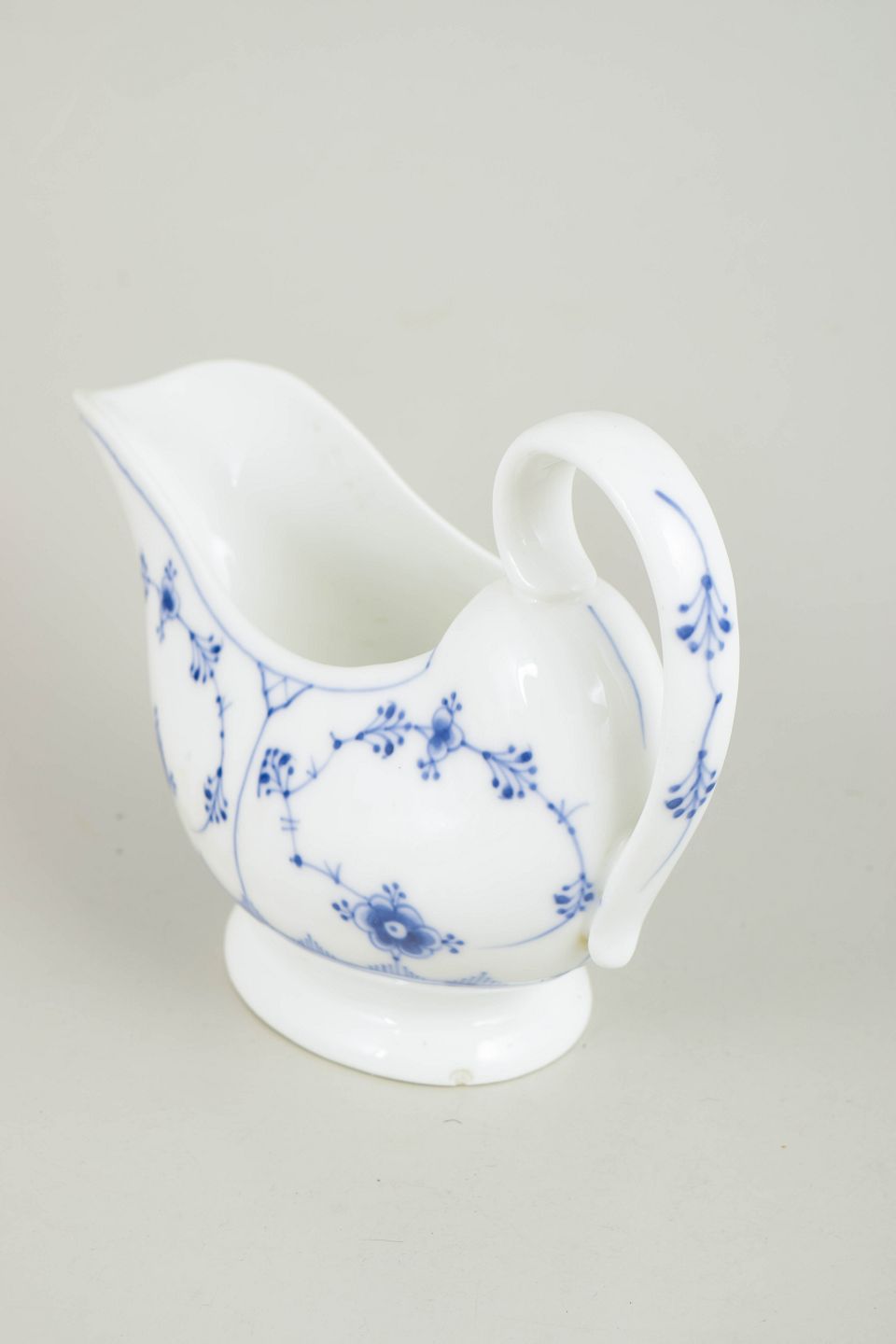 Sauceskål i håndmalet porcelæn fra Musselmalet Riflet med klassisk underglasurdekoration i koboltblå. Model 1/407. Første sortering. Fremstillet i 1920’erne. Mindre afslag ved foden, se foto.