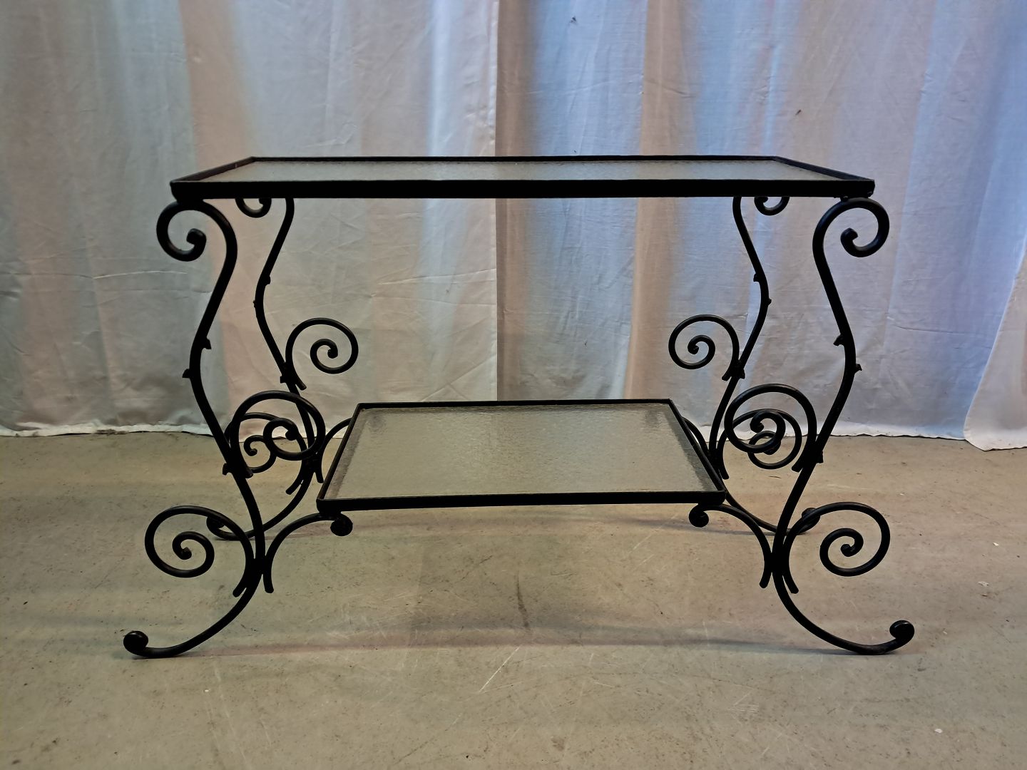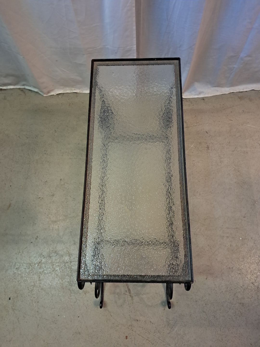 Plantebord i malet metal med glasplader, fra 1940erne.