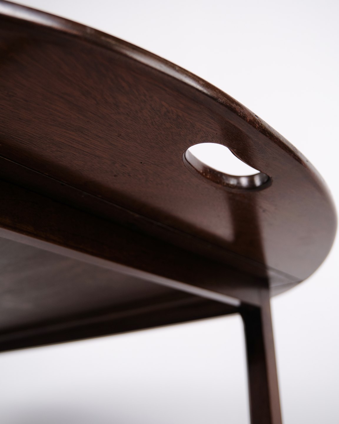 Butlertisch aus Mahagoni mit Messingbeschlägen aus den 1930er Jahren. Englisches Design mit klassischem Ausdruck und funktionaler Formensprache.