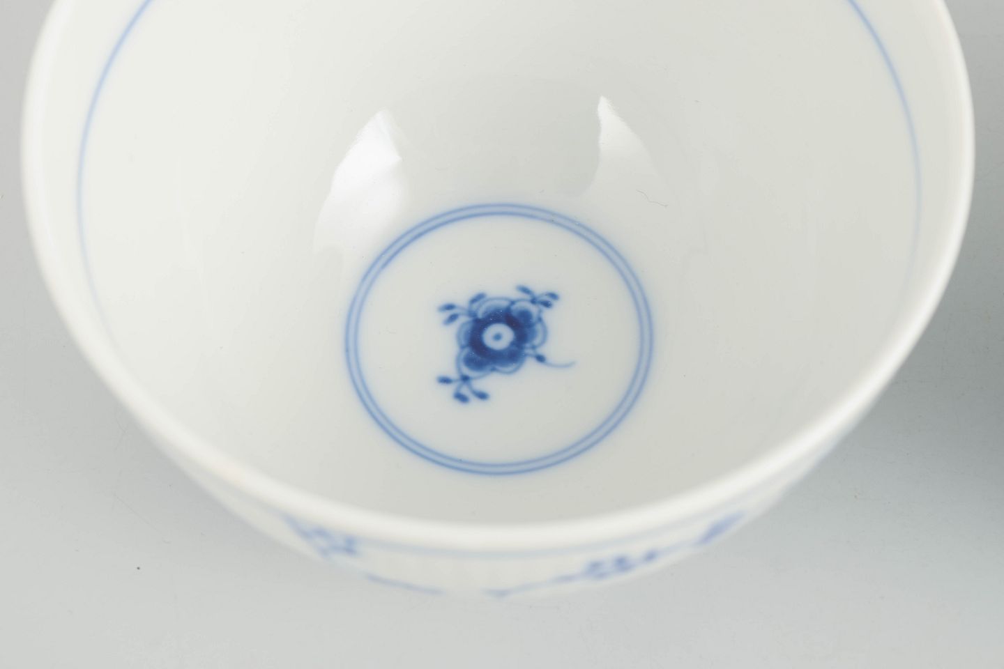 Sæt af to skåle i håndmalet porcelæn fra Musselmalet Riflet med klassisk underglasurdekoration i koboltblå og riflede felter. Model 1/209. H. 7 cm, D. 12 cm. Første sortering. Fremstillet i 1980’erne.
