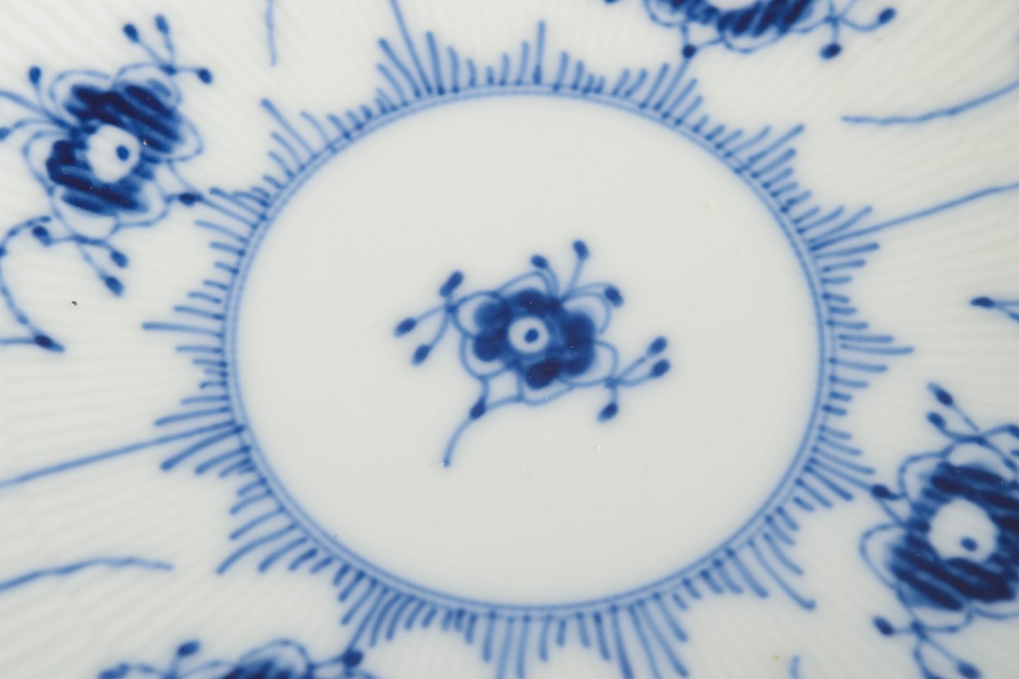 Opsats i håndmalet porcelæn fra Musselmalet Riflet med klassisk underglasurdekoration i koboltblå og riflede felter. Model 1/22.