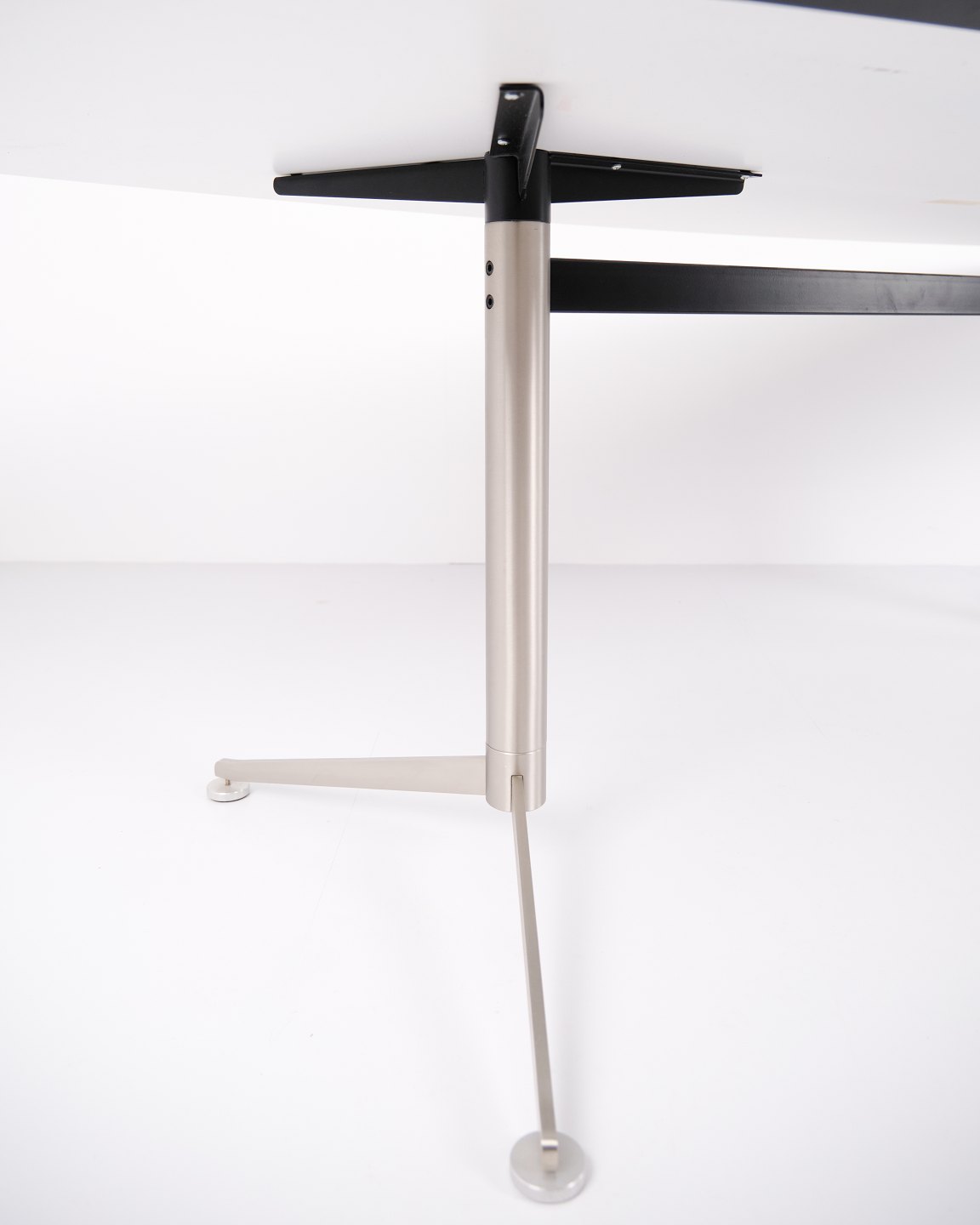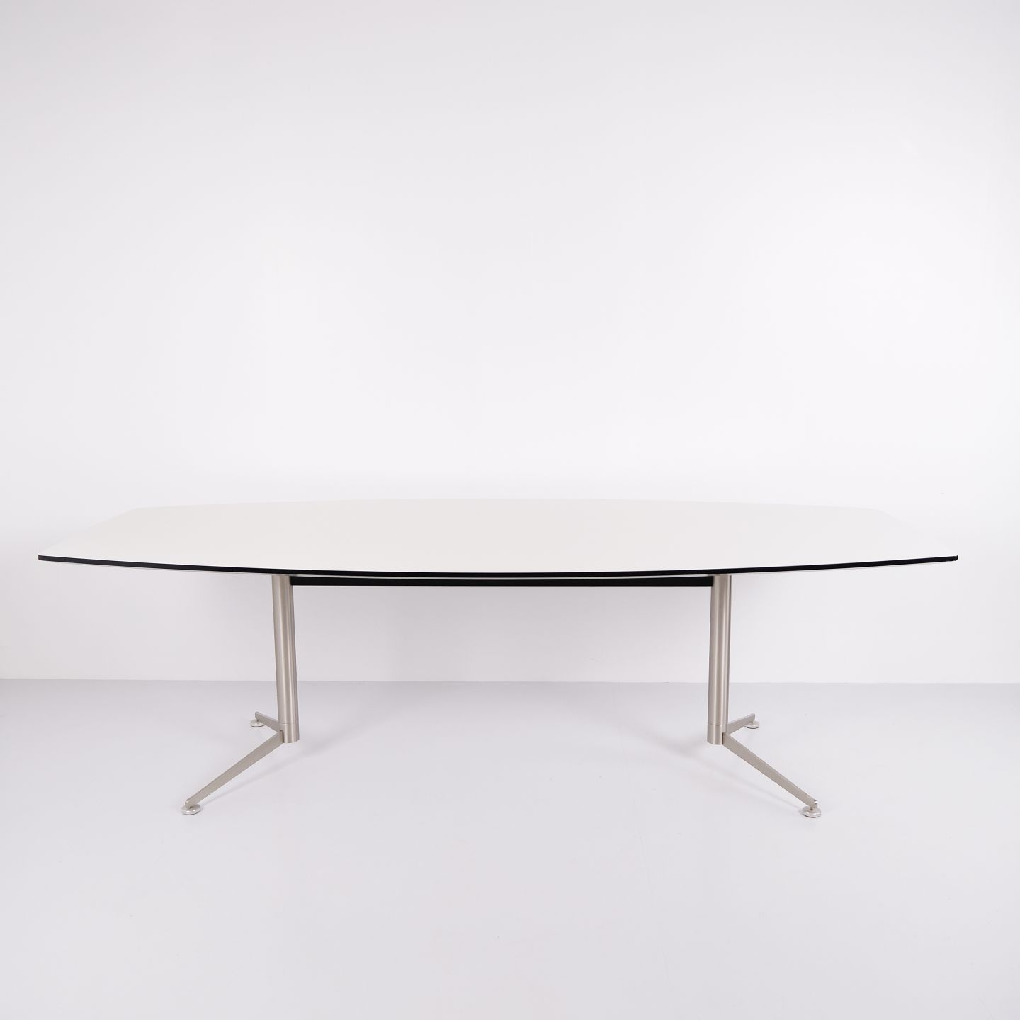 Paustian Konferenztisch Modell SP64 Spinal in weißem Laminat mit Gestell aus gebürstetem Stahl. Dänisches Design mit funktionalem und modernem Ausdruck.