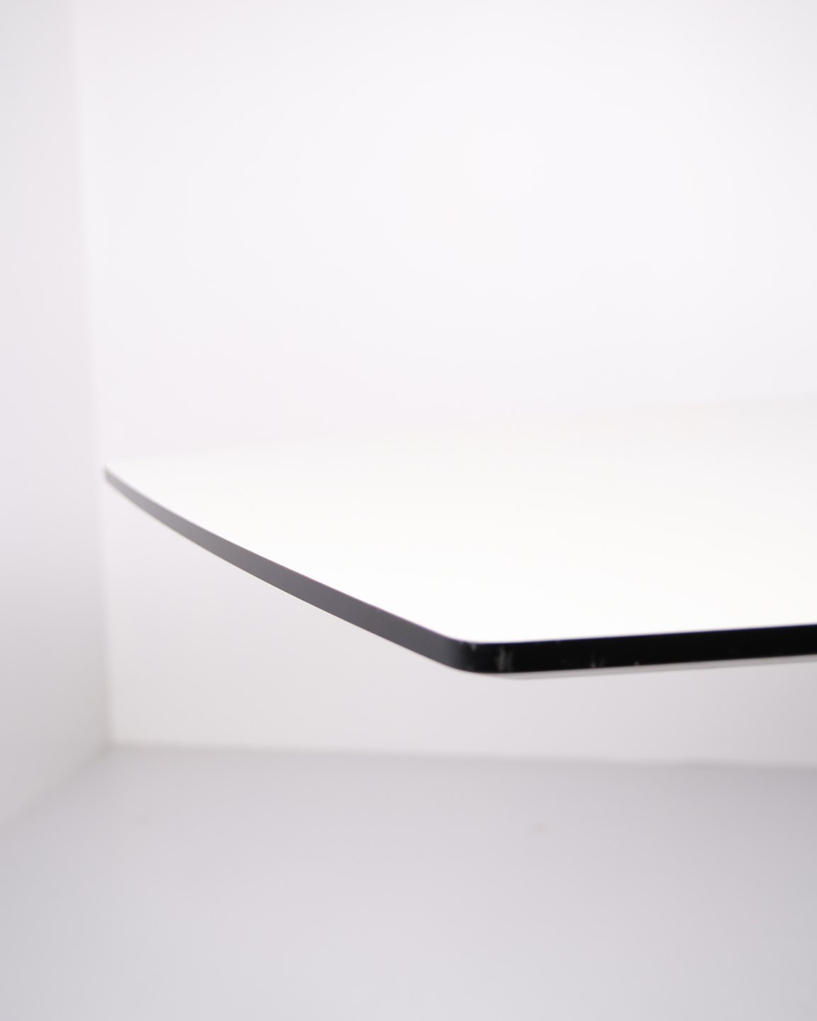 — Material: Weißes Laminat und Gestell aus gebürstetem Stahl
