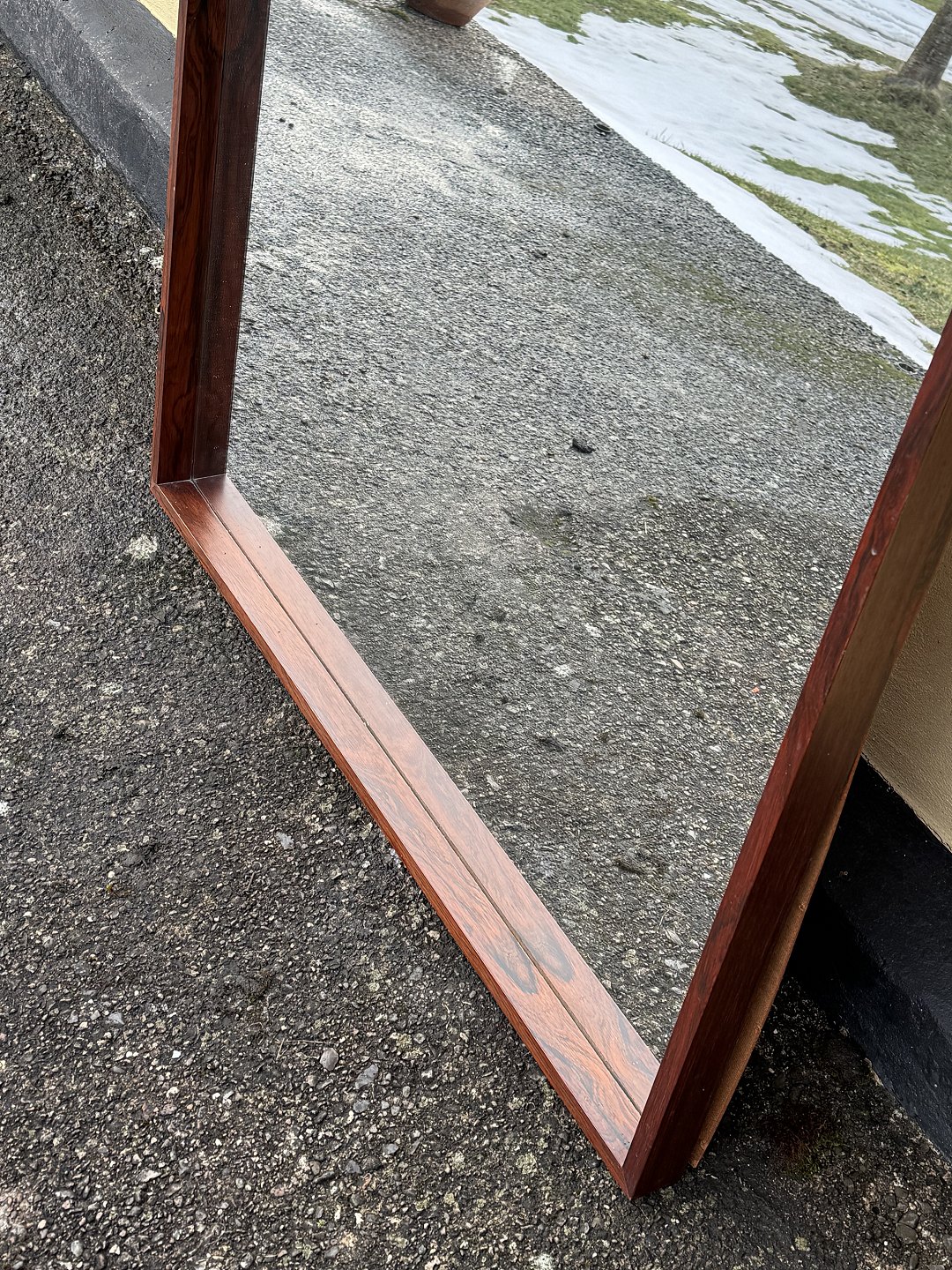 Großer Spiegel aus Palisanderholz mit stabilem Rahmen. War Teil eines Flursets zusammen mit dem Sideboard (Artikelnummer 632824). Nicht mehr im Sortiment von Illums Bolighus. Maße: 100 x 123 cm. *Hervorragender Zustand*