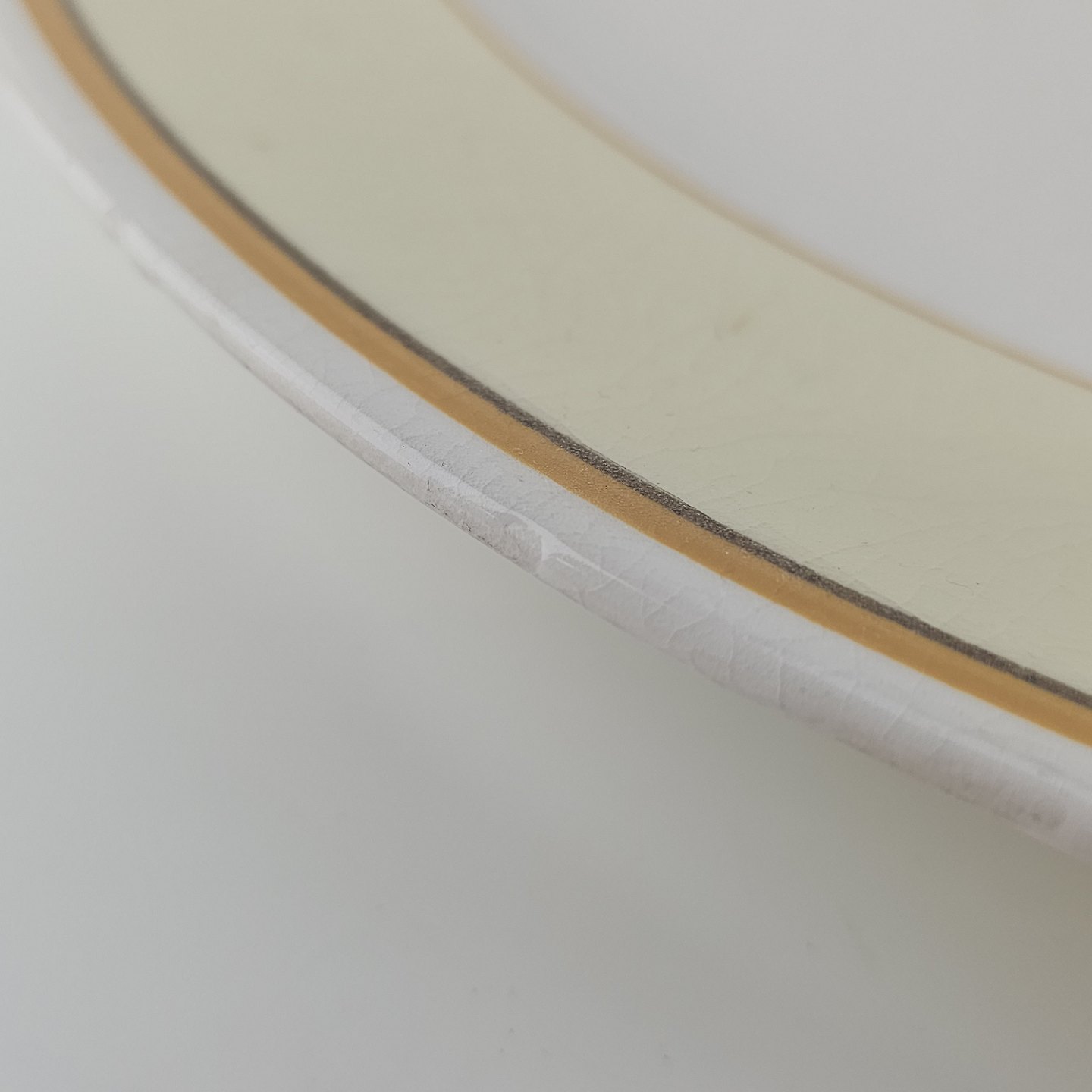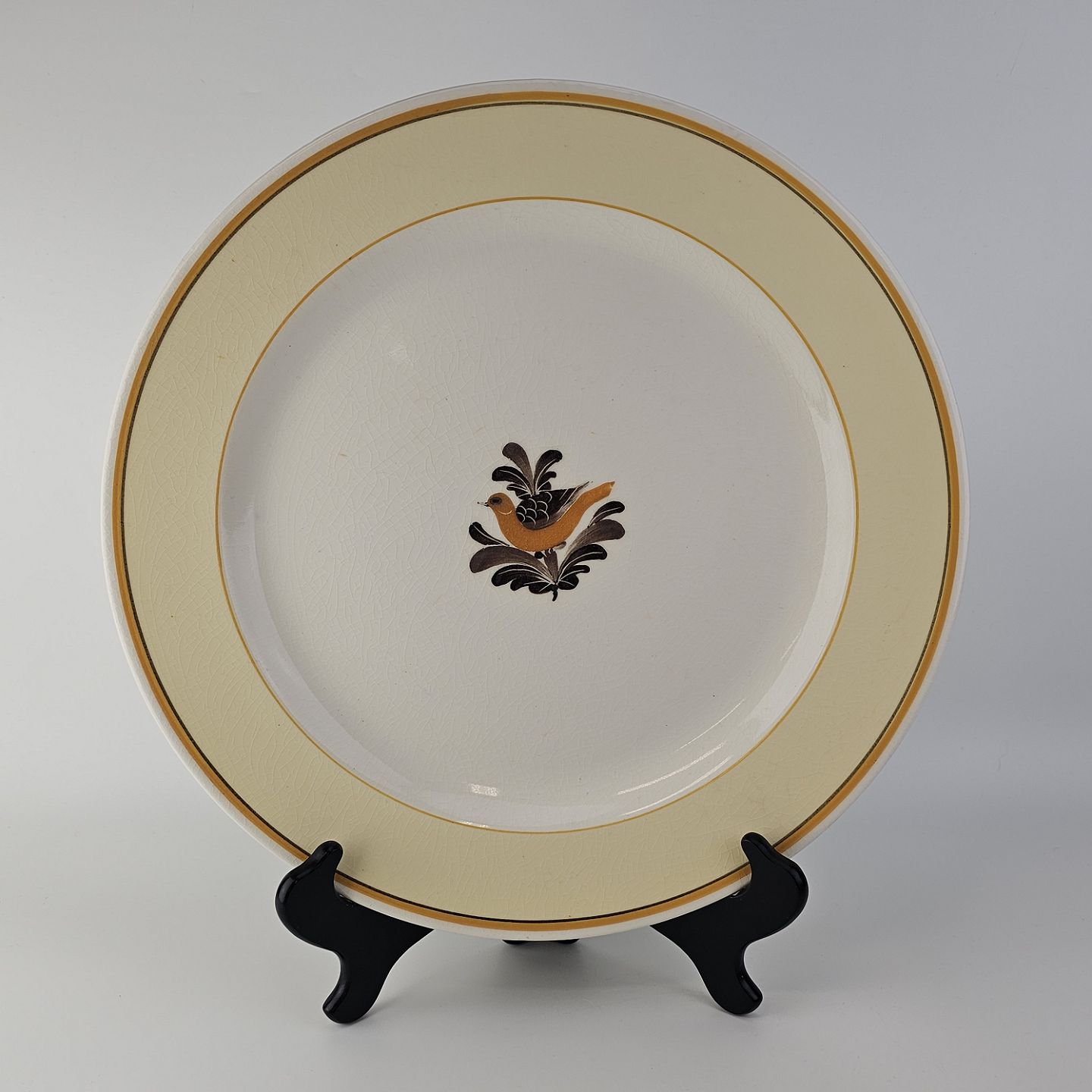 Rundt fad i fajance fra stellet Margrethe fremstillet i perioden 1937-1940.
