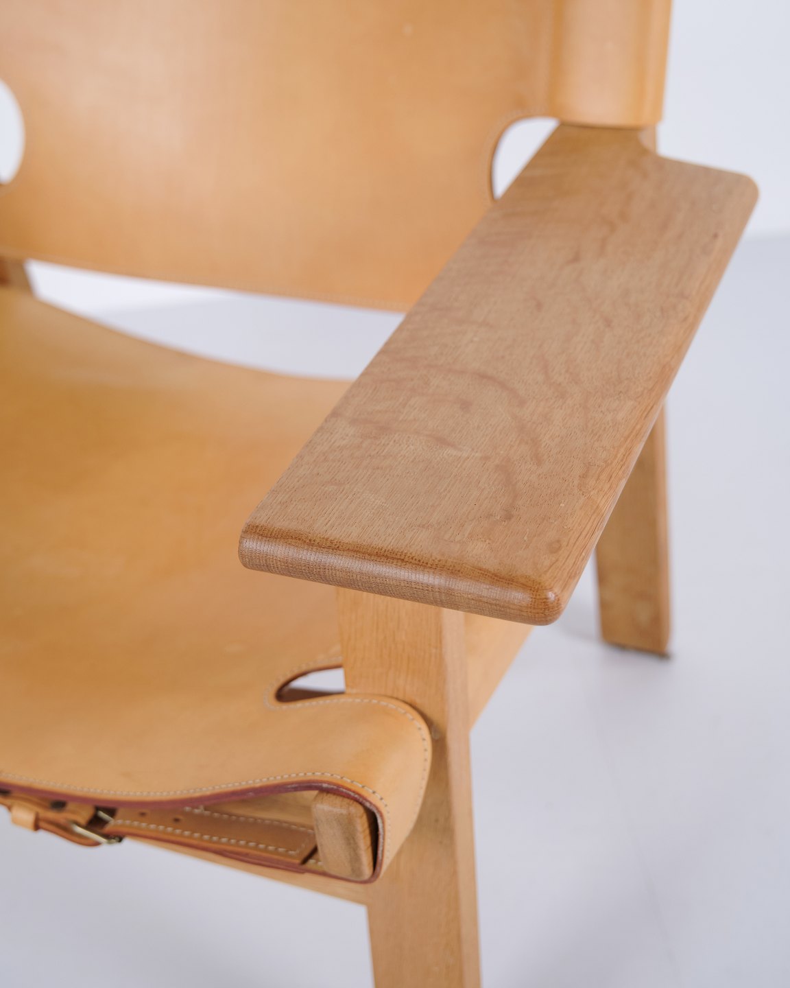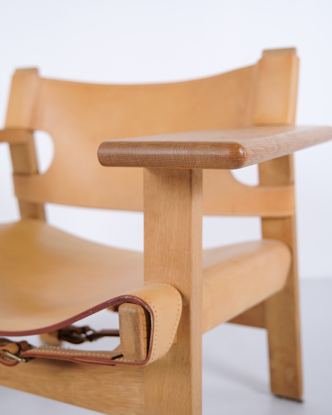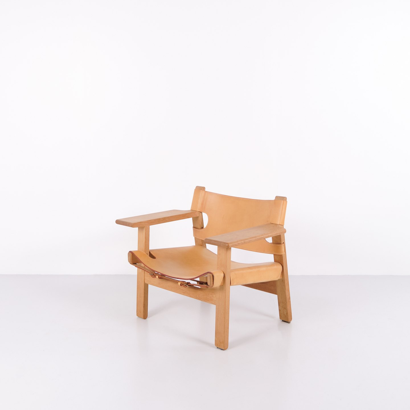 Børge Mogensen Der Spanische Stuhl Modell BM2226 aus natürlich patiniertem Kernleder aus den 1960er Jahren. Klassische dänische Designikone mit robustem Ausdruck.