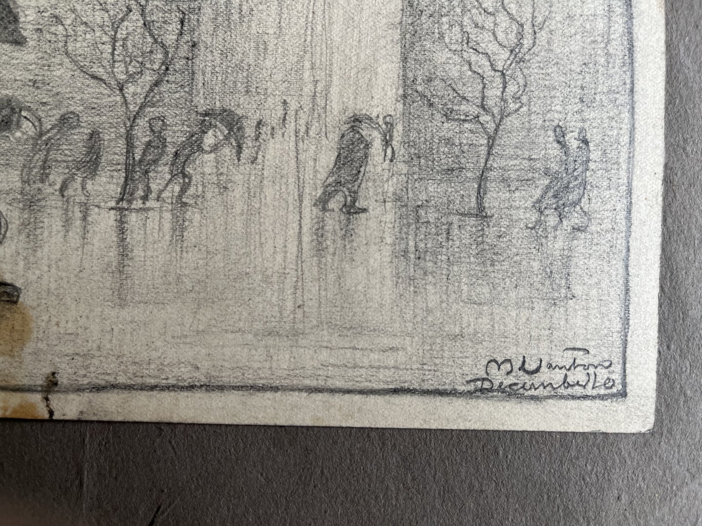 Bly på papir monteret på pap