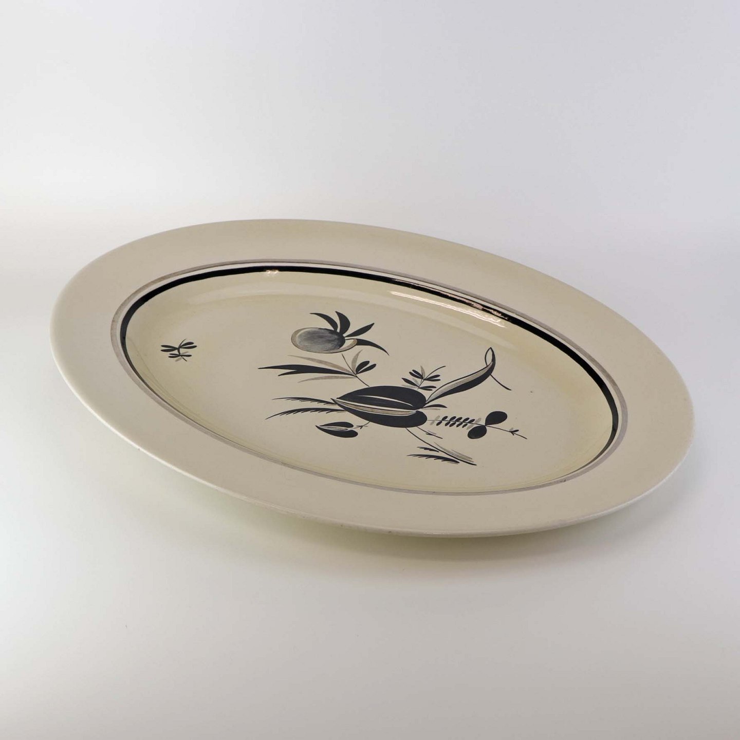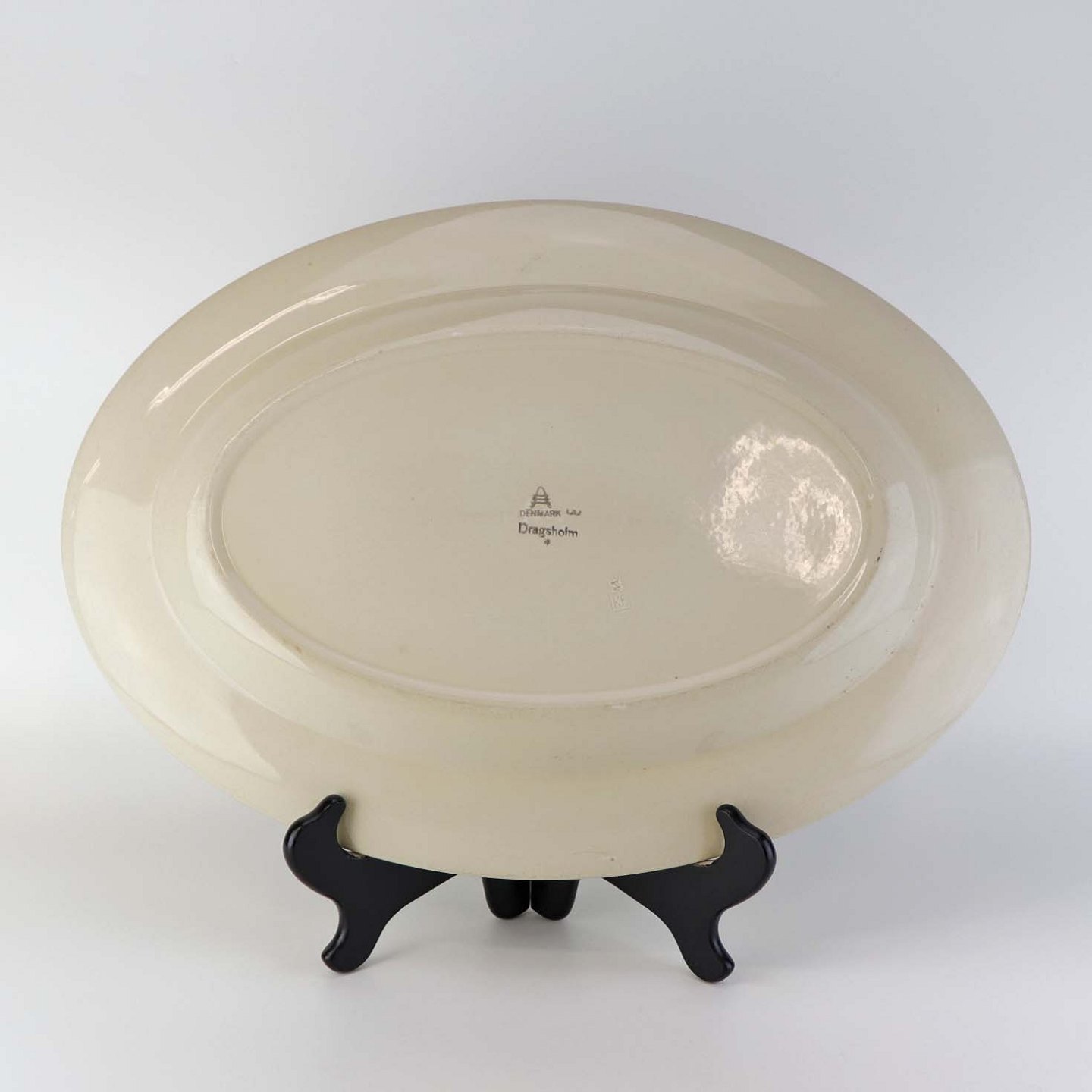 Text zugänglich auf Dänische: Stort ovalt serveringsfad i fajance fra stellet Dragsholm fremstillet i perioden 1934-1965. Nr 256