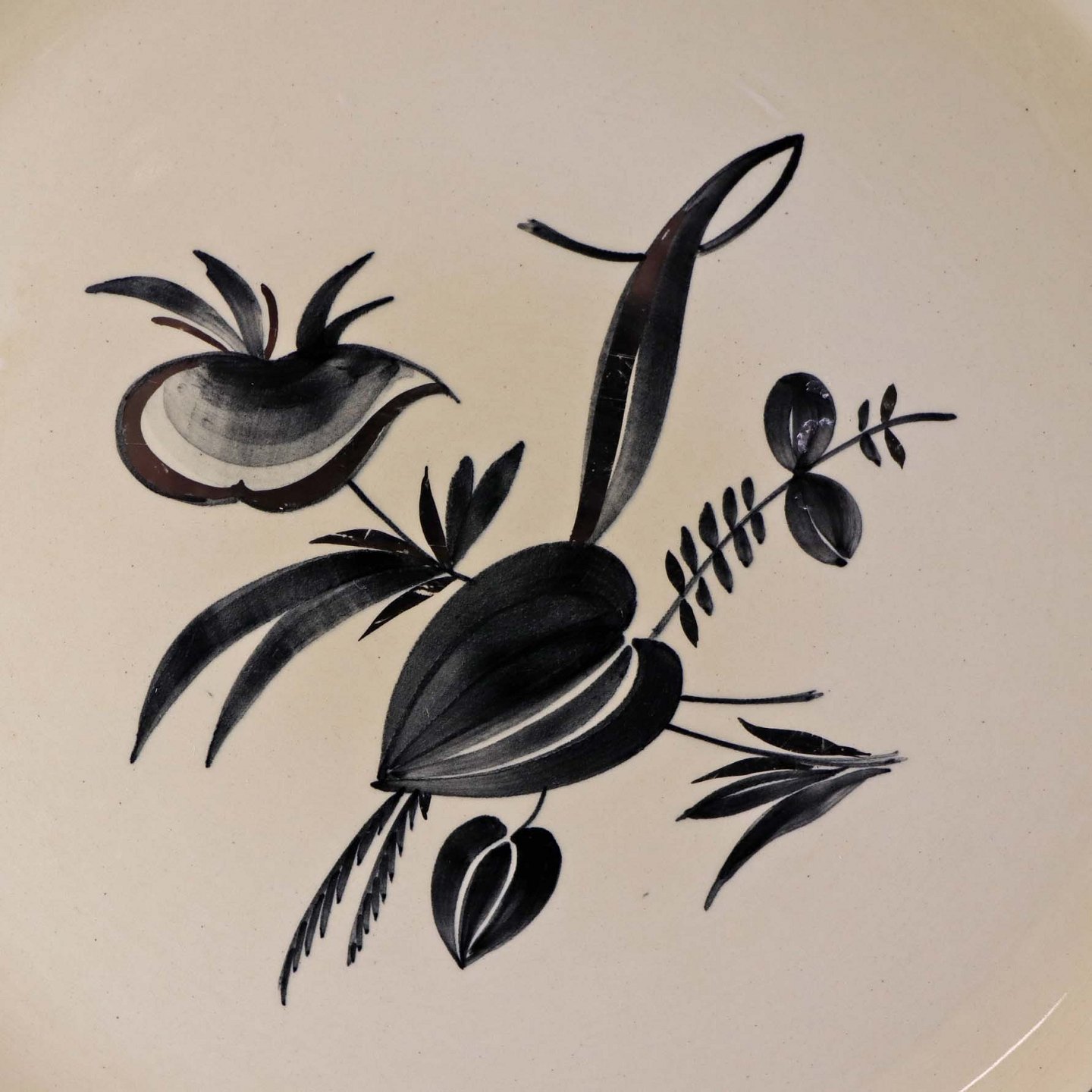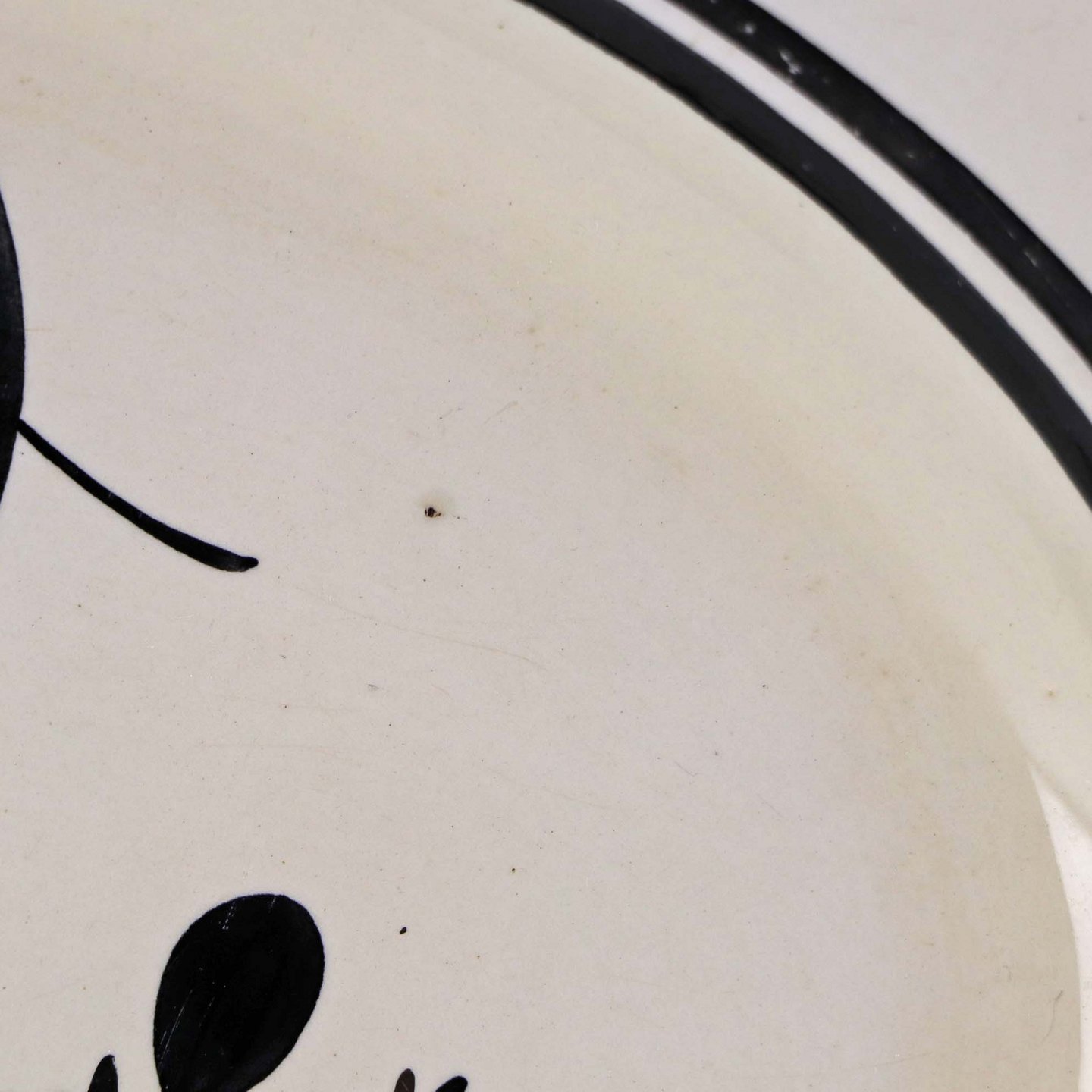 Fremstår med brugsspor på dekorationen samt ujævnheder i glasuren.