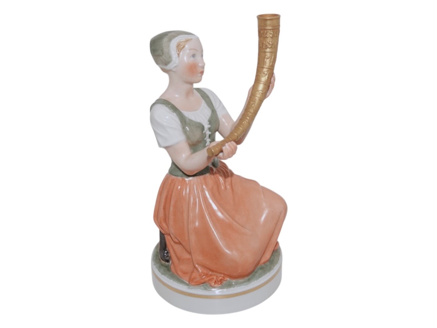 Royal Copenhagen figur, Pigen med guldhornet i overglasur.