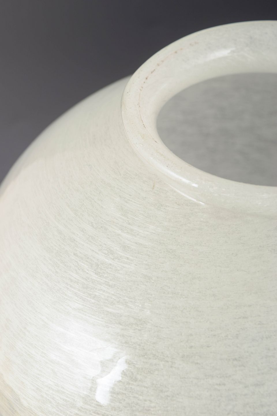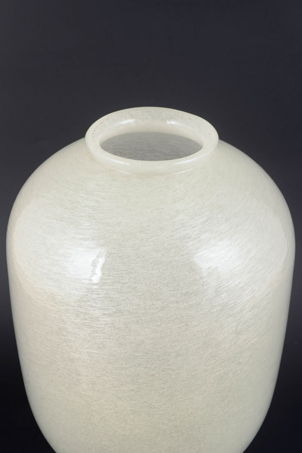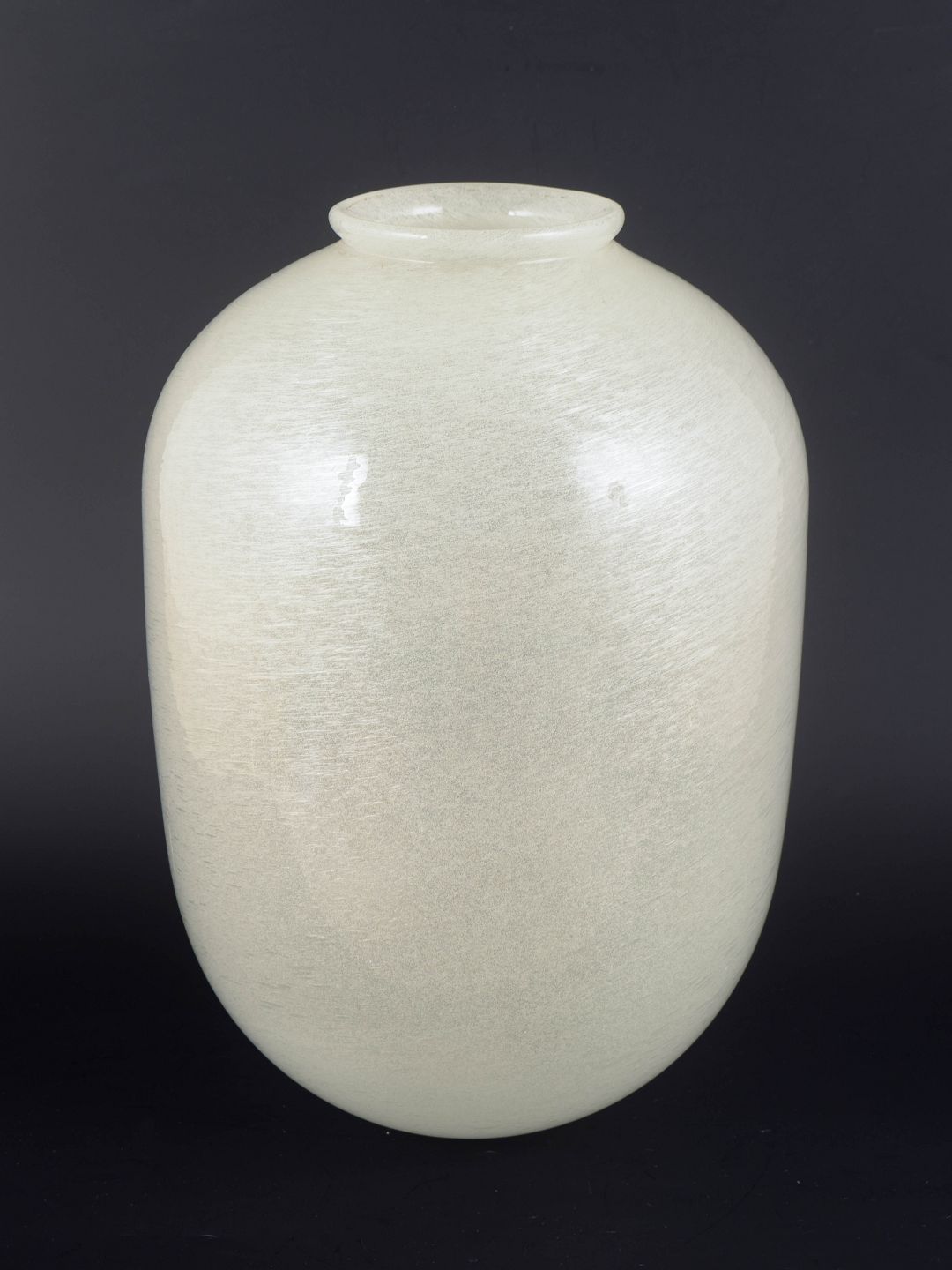 Monumental mundblæst kunstglasvase i matteret, elfenbenshvidt glas med silkeblød, let struktureret overflade og enkel, balusterformet silhuet.