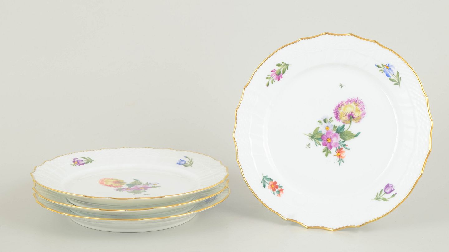 Text zugänglich auf Dänische: Royal Copenhagen, saksisk blomst sæt af fire frokosttallerkener.