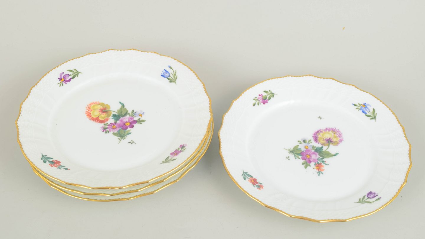 Håndmalet porcelæn dekoreret med saksisk blomst, model 493/1630. Første sortering.