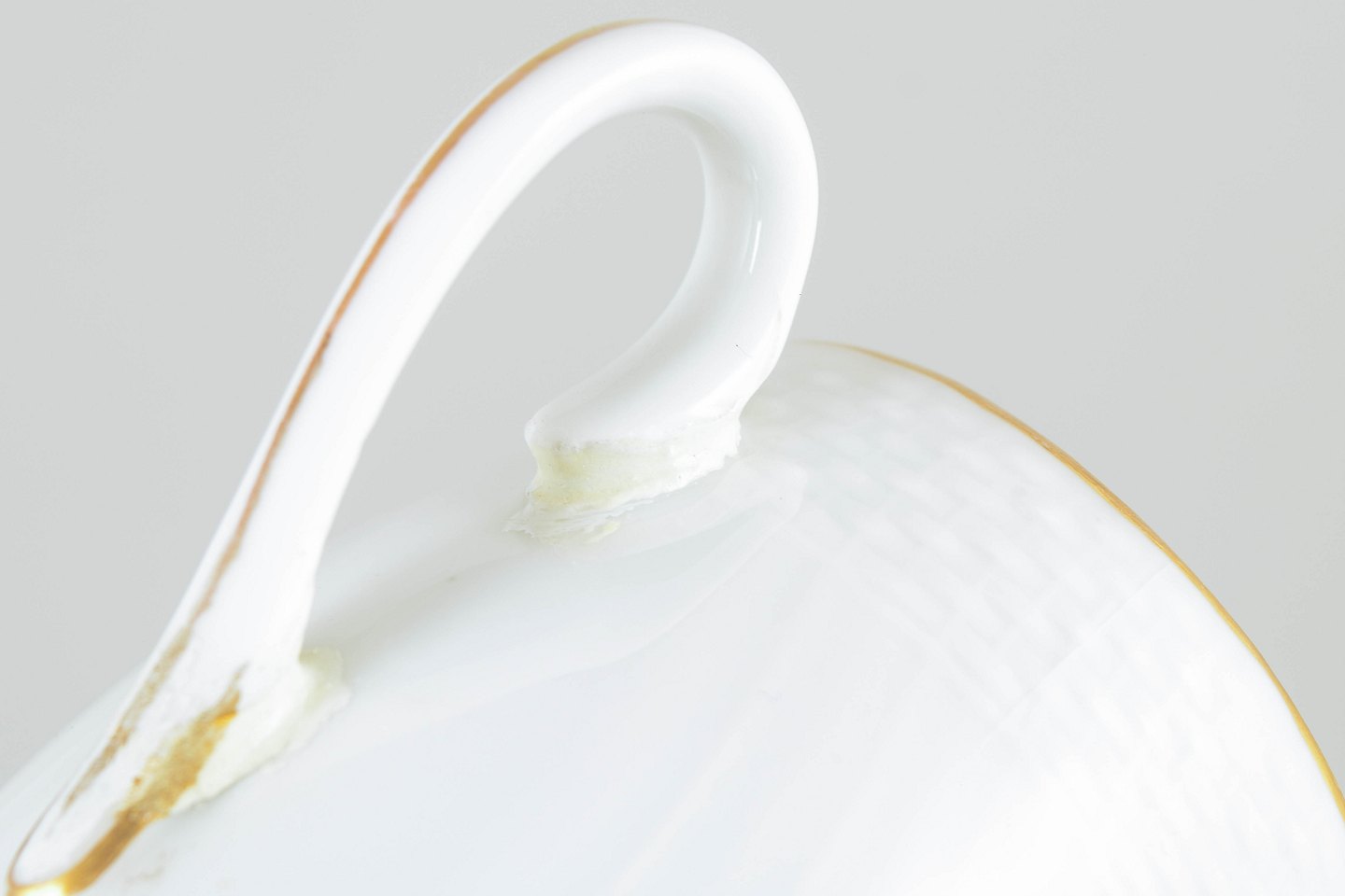 Royal Copenhagen blev grundlagt i 1775 i København under protektion af enkedronning Juliane Marie. Fabrikken er kendt for sit håndmalede porcelæn og høje kvalitet. Dekorationen saksisk blomst er inspireret af 1700-tallets europæiske porcelænstraditioner og blev produceret i flere variationer gennem det 20. århundrede. Hans Hansen (1884–1940) grundlagde sit sølvsmedeværksted i Kolding i 1906 og blev anerkendt for sit gedigne håndværk og elegante formsprog, som senere blev videreført af firmaet i midten af det 20. århundrede.