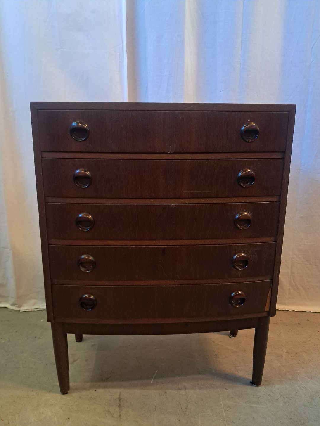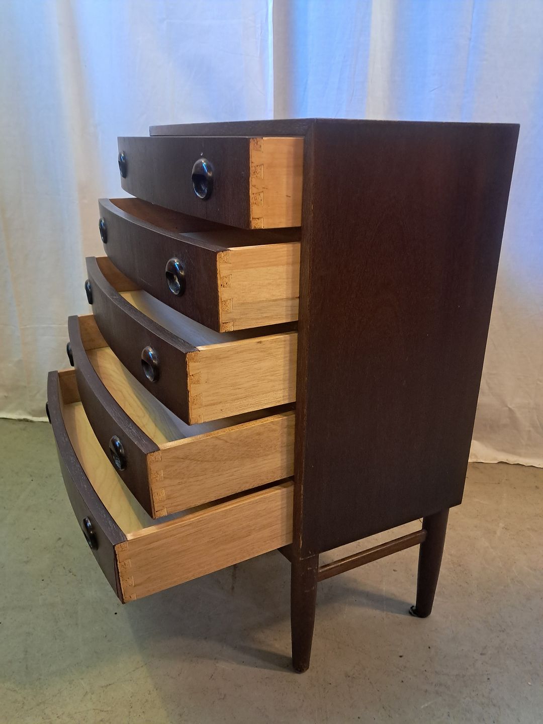 Kommode i bejdset fineret rgrtræ, fra 1960erne.