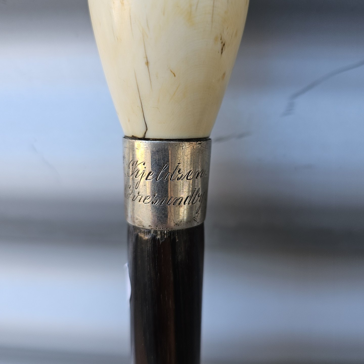 Stok i palisander med knop af ben og sølv, 828S
